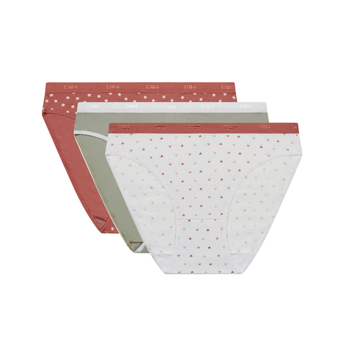 Набір з трьох трусиків різних кольорів. Ніжна бавовна та м'який комфортний пояс із логотипом "Dim". Плоска еластична обробка. Комфорт протягом дня. Прекрасний подарунок для себе та своїх близьких.