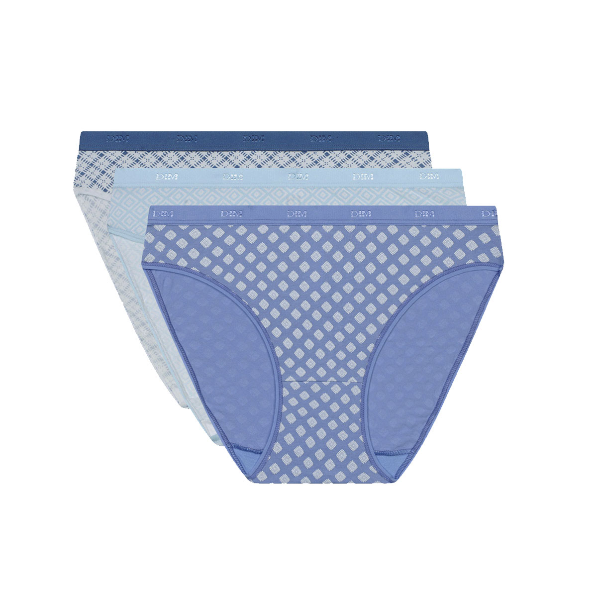 Набір із трьох трусиків різних кольорів. Ніжна бавовна та м'який комфортний пояс з логотипом "Dim". Плоска еластична обробка. Комфорт протягом дня. Прекрасний подарунок для себе та своїх близьких.