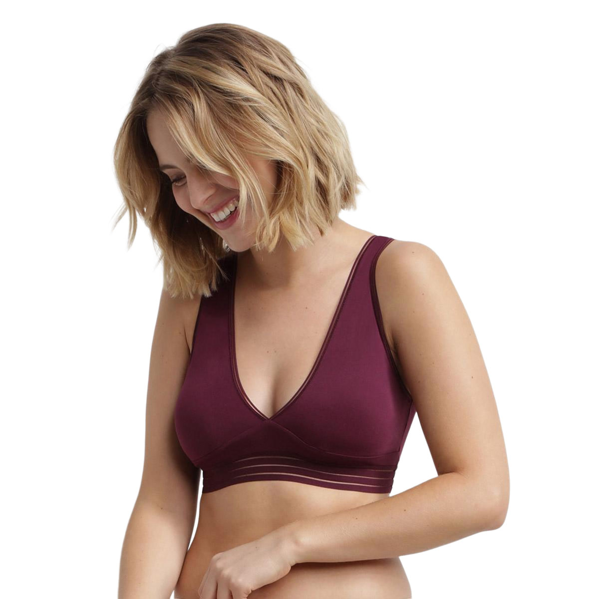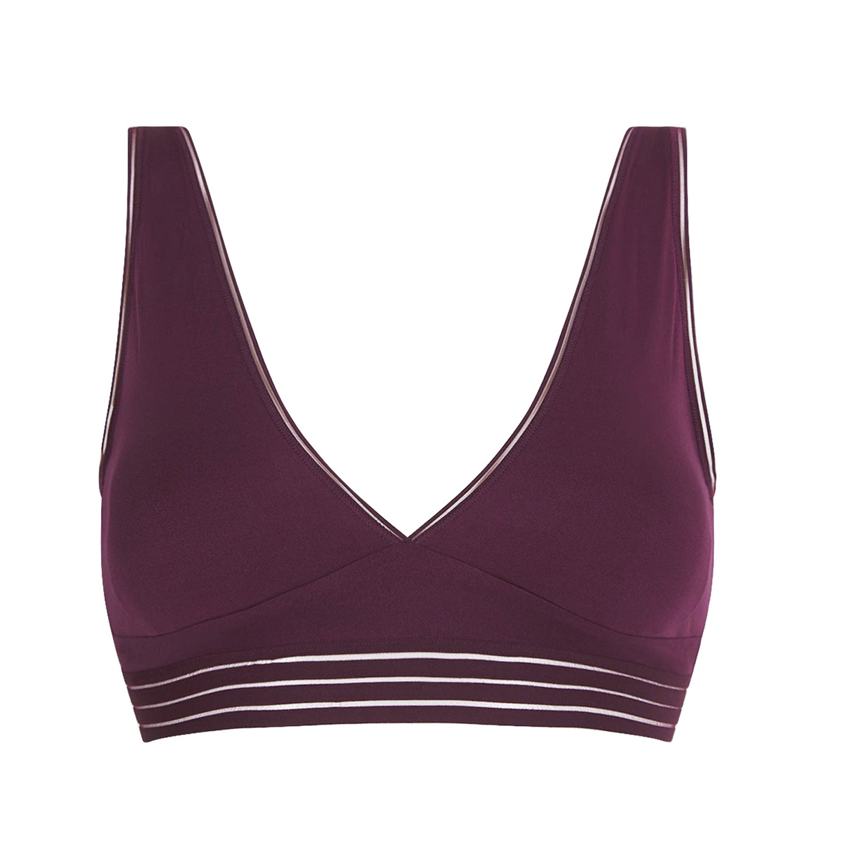 Бюстгальтер - трикутник без кісточок і без застібки. Виконаний із м'якої та еластичної мікрофібри. Чашки - з подушками, які виймаються. V-образна форма декольте.