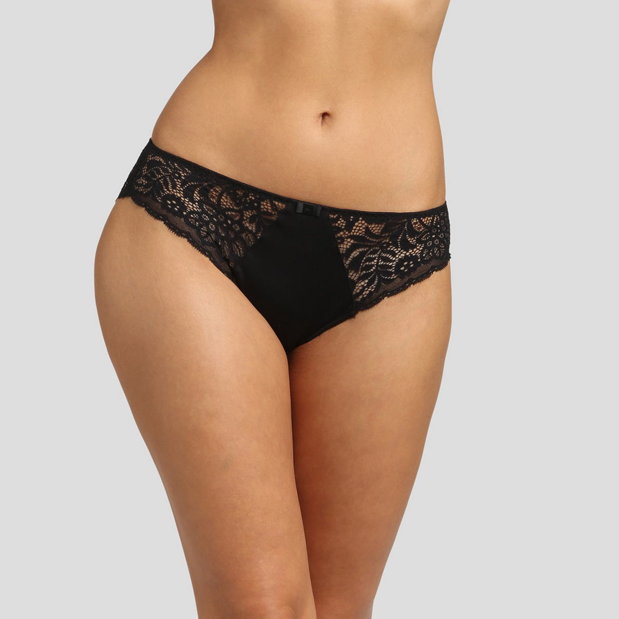 Труси-бікіні із середньо-заниженою посадкою. Передня панель виконана з м'якої мікрофібри, бічні та задня панелі - із плоского мережива з квітковим орнаментом.