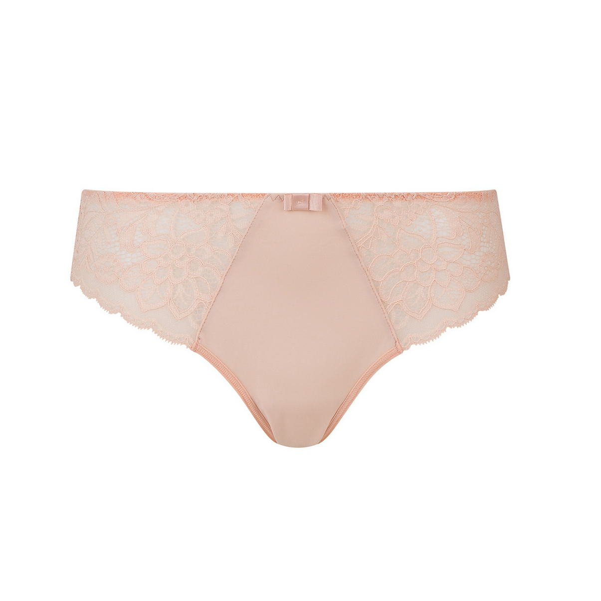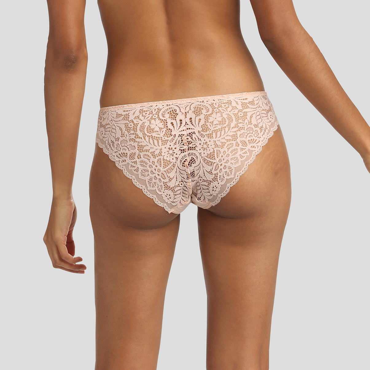 Труси-бікіні із середньо-заниженою посадкою. Передня панель виконана з м'якої мікрофібри, бічні та задня панелі - із плоского мережива з квітковим орнаментом.
