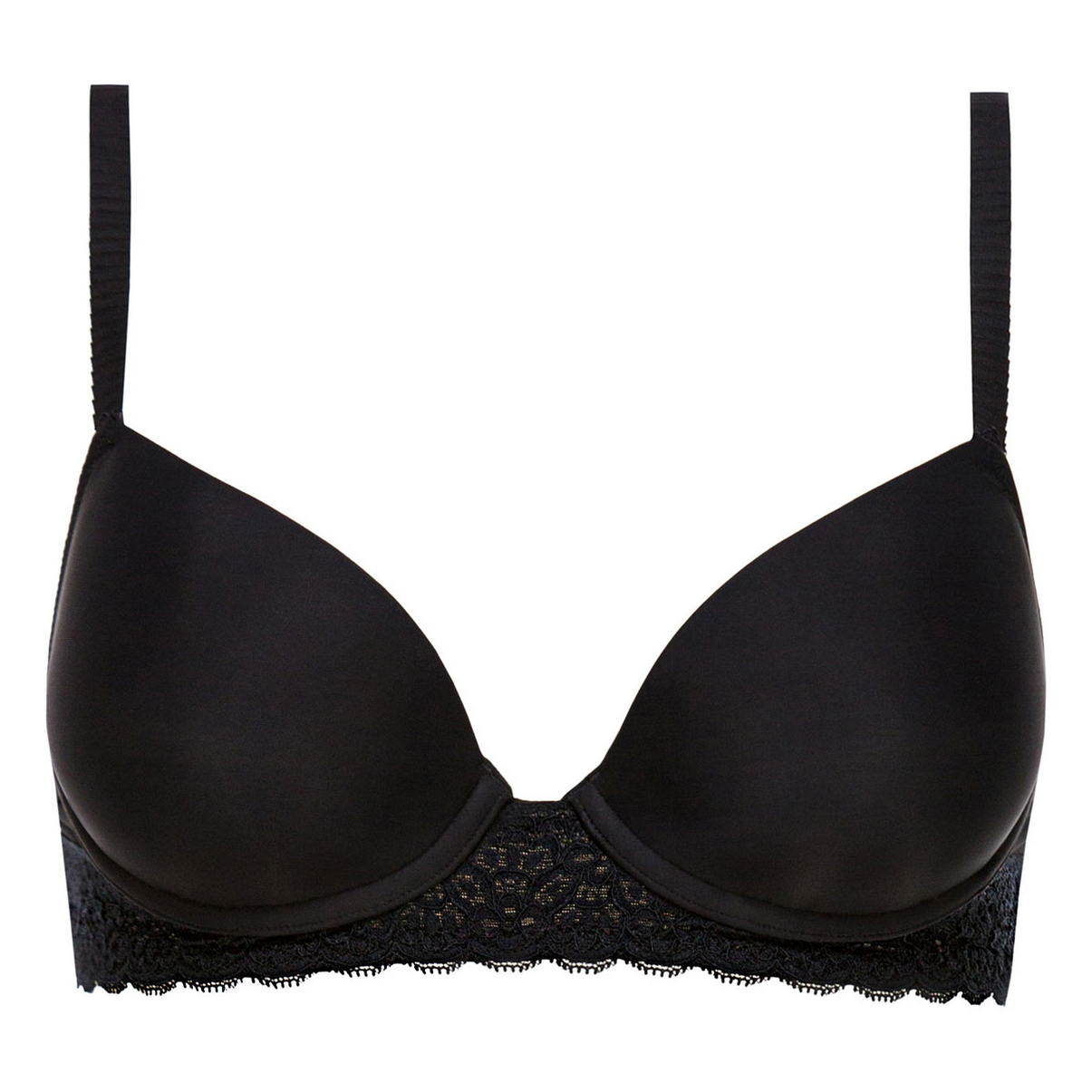 Бюстгальтер пуш ап. З прошарком із мусу, з мульованою гладкою формою чашок. Глибоке декольте. Бічні панелі виконані з мережива – для надання жіночності. Регульовані бретелі.