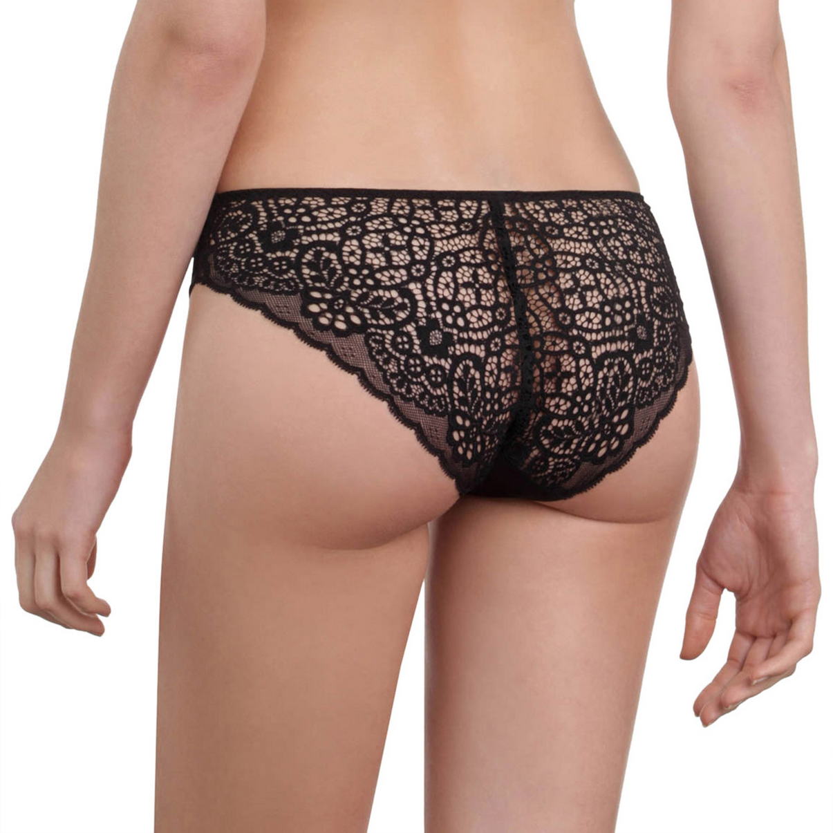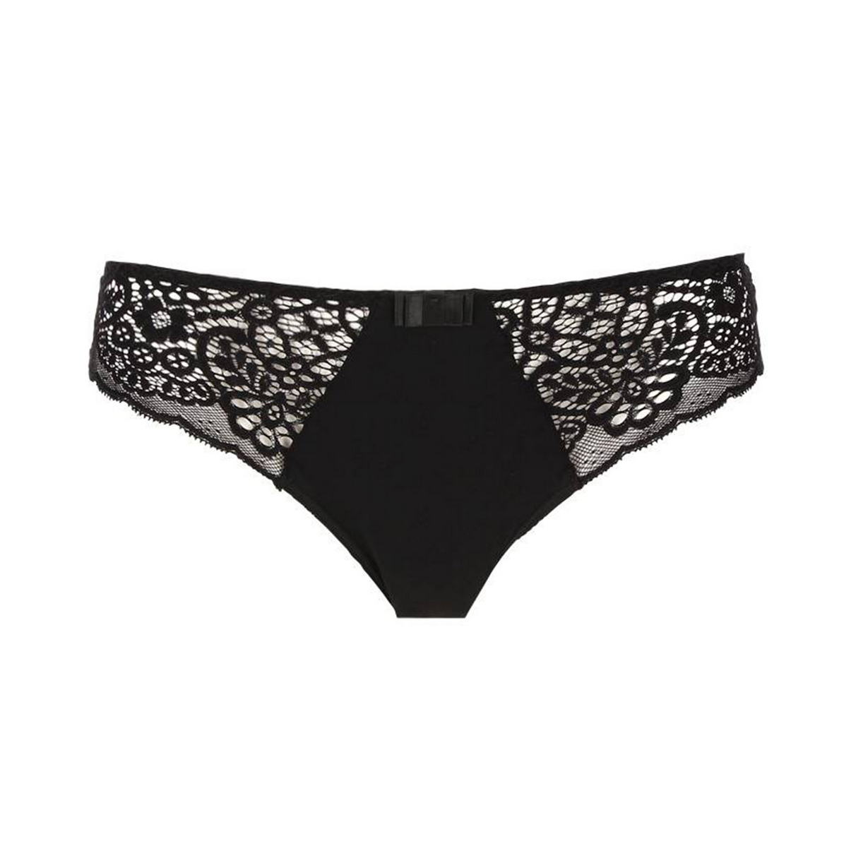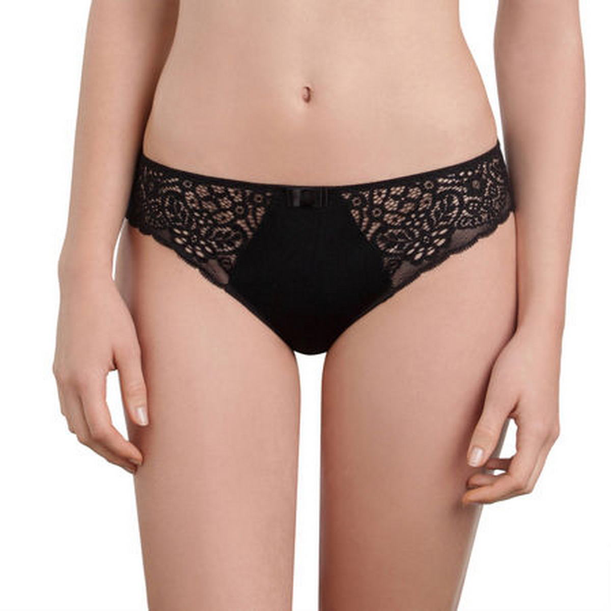 Трусики середньо-заниженої посадки з еластичної тканини та плоского мережива. Жіночне оздоблення та деталі надають їм вишуканого вигляду. Задня панель повністю мереживна. Бавовняна ластовиця.