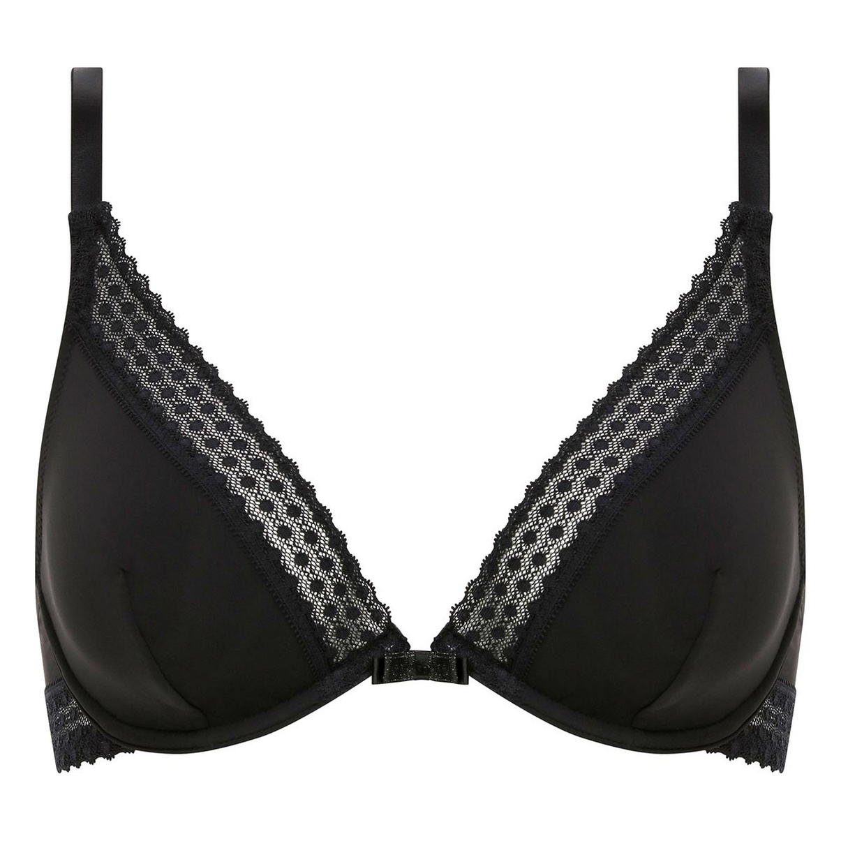 Бюстгальтер з м'якою трикутною формою чашок на кісточках. Чашки з внутрішньої сторони дубльовані для надання необхідної підтримки. Область декольте декорована мереживною тасьмою. На центральній панелі розмістився бантик. Бічні панелі також декоровані мереживною тасьмою. Виготовлений з м'якої мікрофібри, бюстгальтер забезпечить комфорт протягом усього дня і мега-сексуальне декольте.
