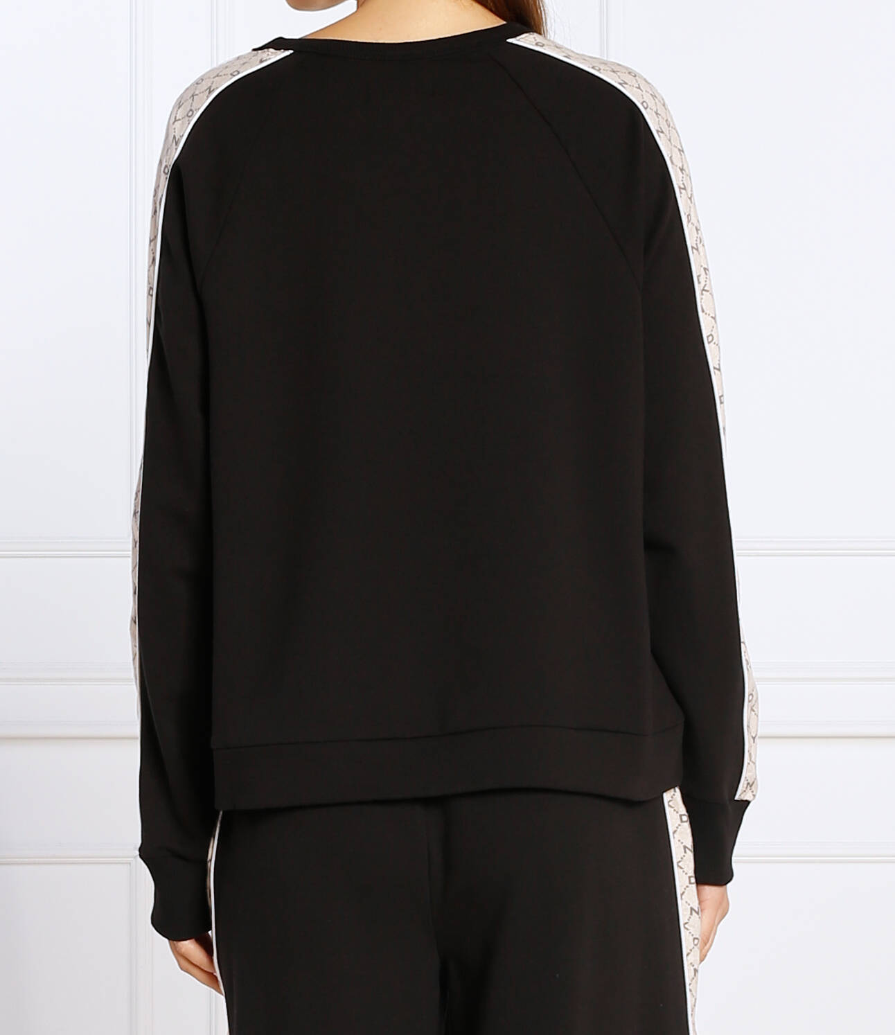 Костюм: кофта+брюки. Кофта-реглан вільного крою з довгими рукавами на манжетах. Контрастні лампи на рукавах. Широкі штани вільного крою на резинці доповнені контрастними лампасами.