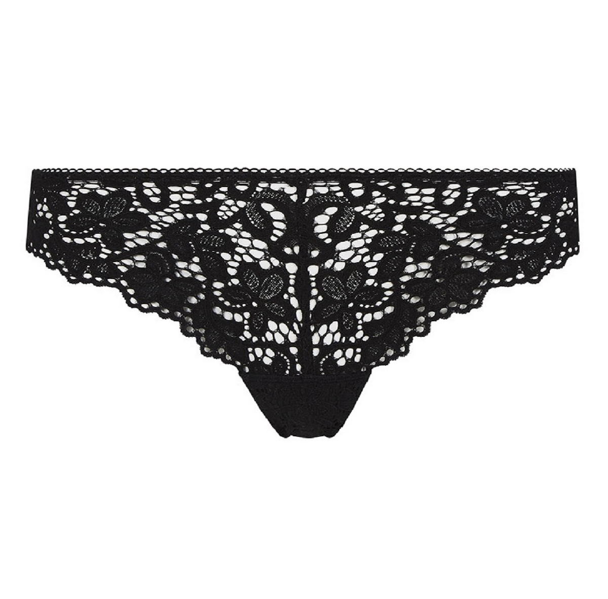 Труси-стрінги, із середньо-заниженою посадкою, повністю виготовлені з гіпюру з квітковим орнаментом.