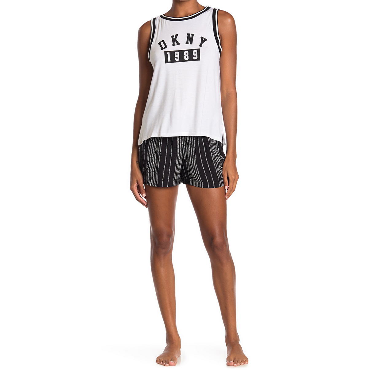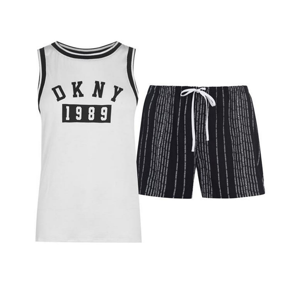Комплект складається з безрукавки та шортів. Безрукавка з круглим вирізом та логотипом "DKNY". Шорти на резинці із бічними кишенями.