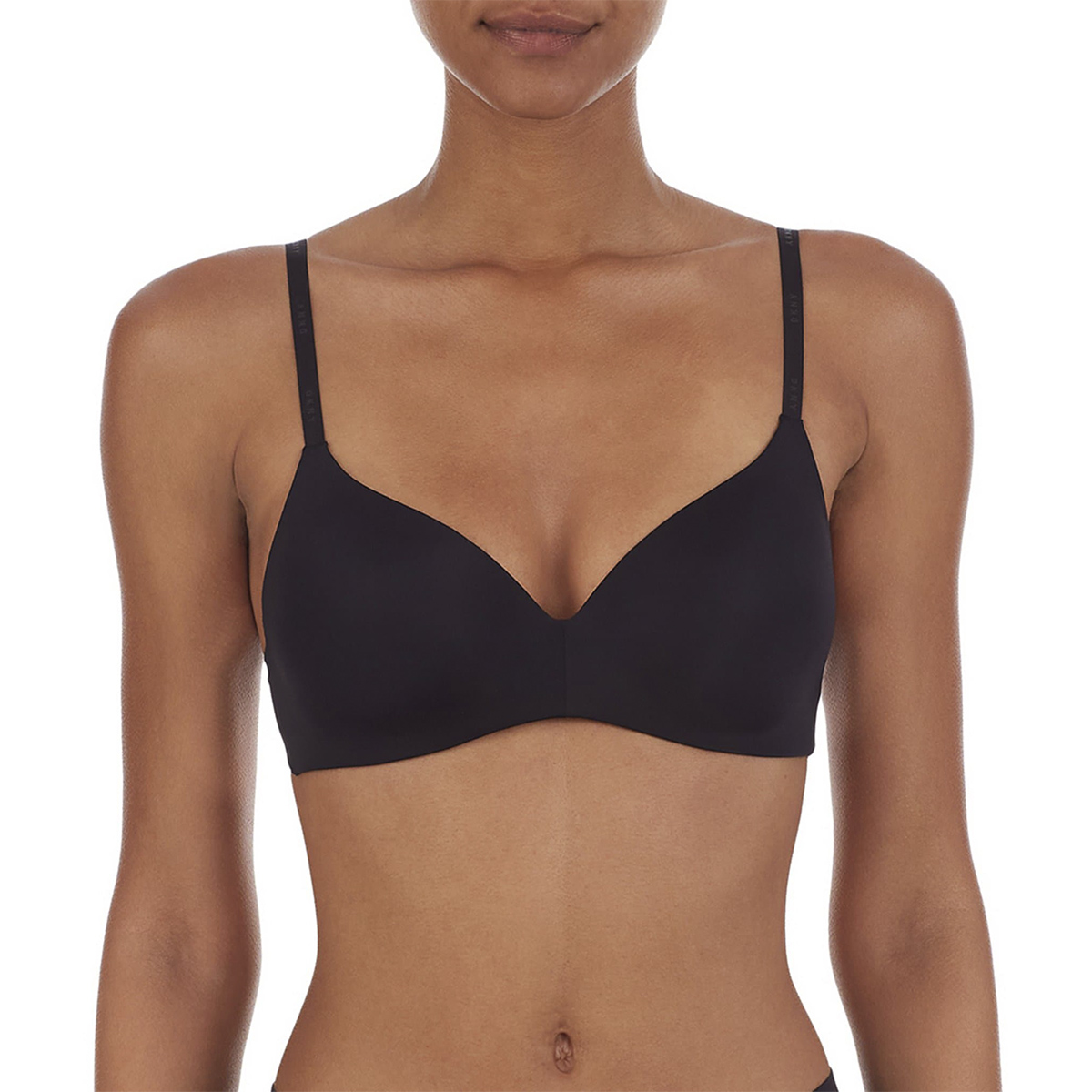 Бюстгальтер формований зі злегка ущільненою трикутною формою чашок без кісточок. Чашки покриті гладкою еластичною мікрофіброю. Безшовні бічні панелі також виконані з гладкої еластичної мікрофібри для максимальної невидимості під одягом. Регульовані бретелі можна перестебнути хрест – на – хрест.