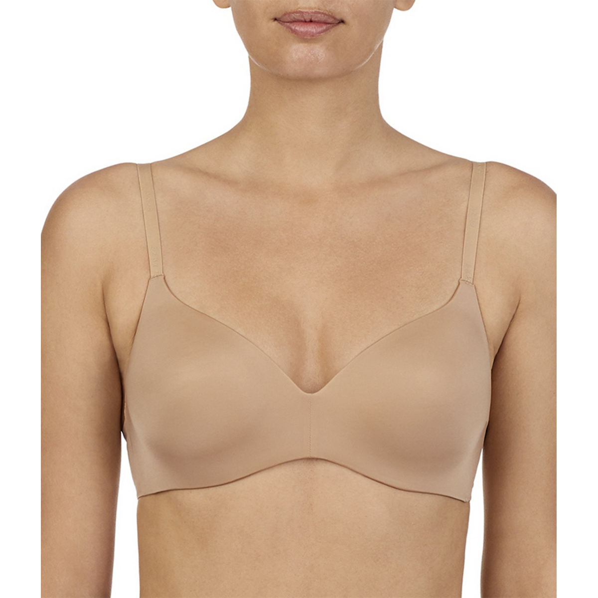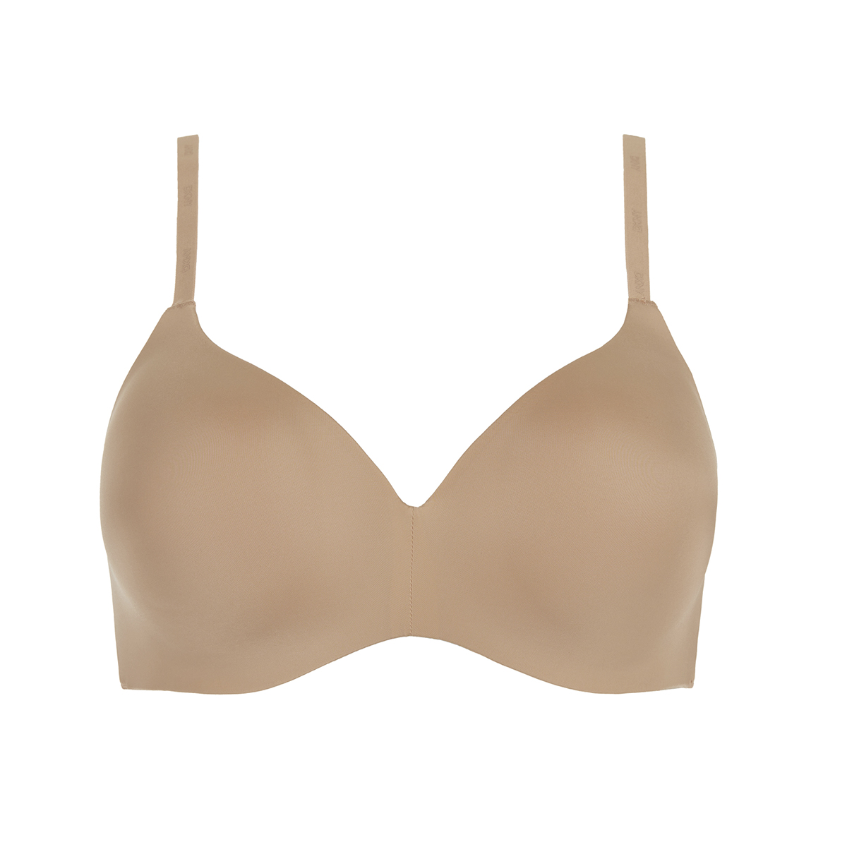 Бюстгальтер формований зі злегка ущільненою трикутною формою чашок без кісточок. Чашки покриті гладкою еластичною мікрофіброю. Безшовні бічні панелі також виконані з гладкої еластичної мікрофібри для максимальної невидимості під одягом. Регульовані бретелі можна перестебнути хрест – на – хрест.