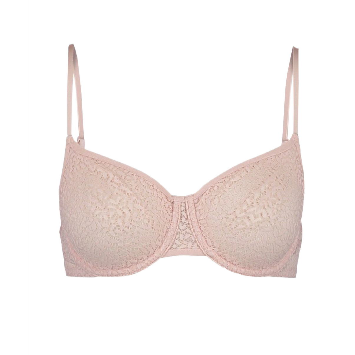 Бюстгальтер з м'якою мульованою формою чашок на кісточках. Чашки, виготовлені з мережива, дубльовані тюлем для надання необхідної підтримки та округлої форми грудей. Бічні та задня панелі по-нижньому краю оброблені еластичною тасьмою. Регульовані бретелі.