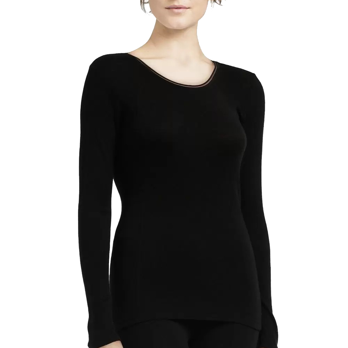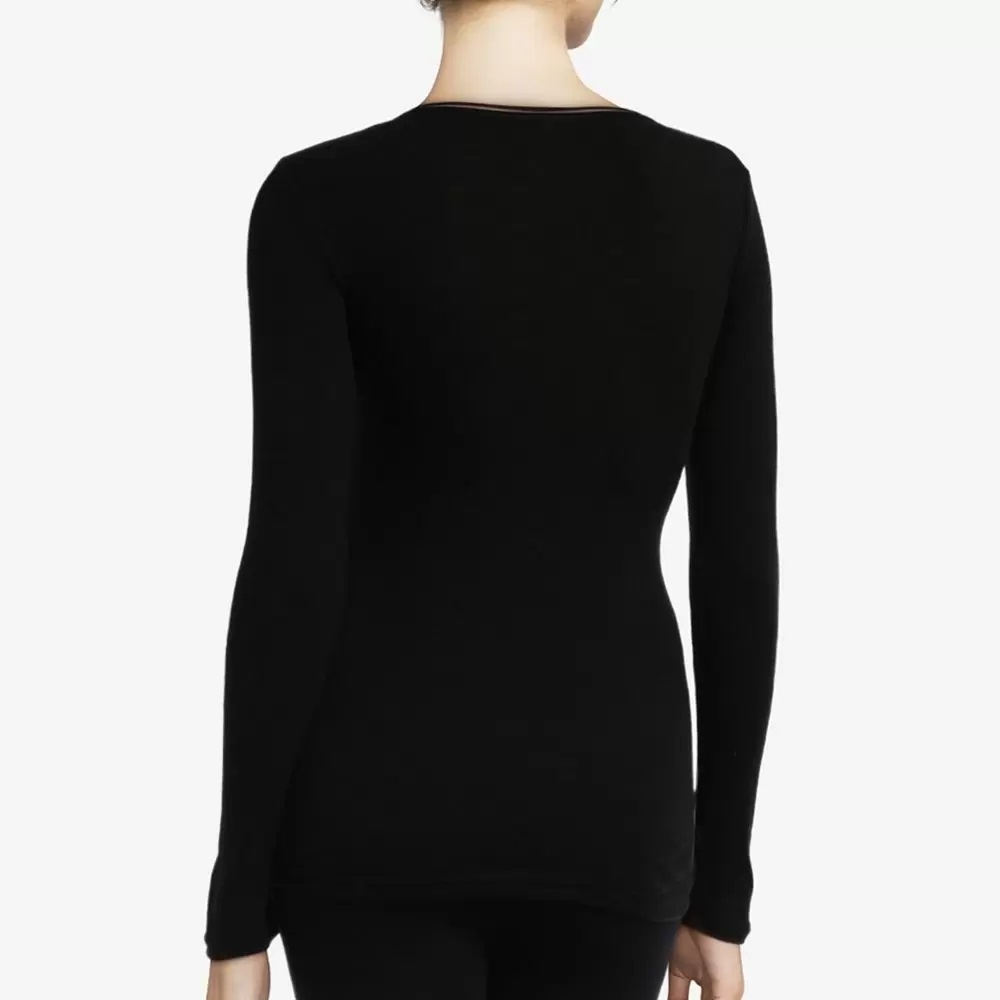 Футблока з довгими рукавами та округлим вирізом. Виконана з вовни та шовку з використанням двох різних видів трикотажу для максимального облягання (з метою досягнення максимального комфорту) та мінімального "ковзання" по тілу.