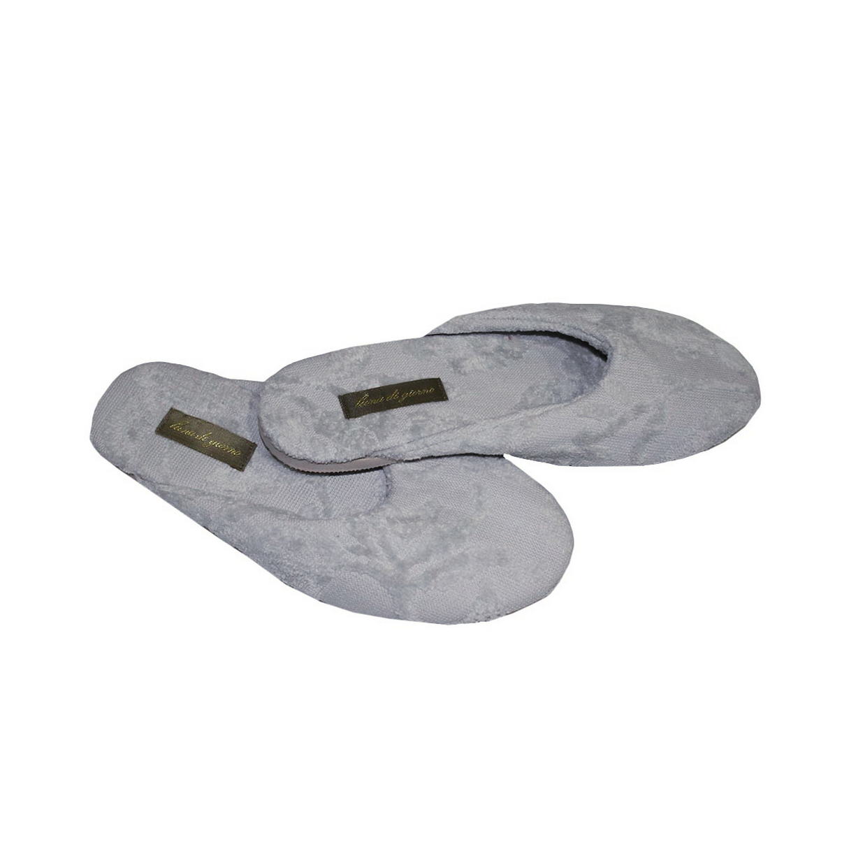 Домашні махрові тапочки виконані з рельєфної махрової тканини. Модель з відкритою п'ятою, всередині махрове полотно. Легка поліуретанова підошва надає еластичності та амортизації при ходьбі.