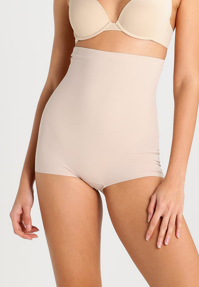 Труси з високою талією виготовлені з "невагомої" мікрофібри, невидимої під одягом. Передня панель дубльована тканиною для легкої корекції. Пояс по задньому краї оснащений силіконовою доріжкою. "Необроблені" нижні краї. Шов на задній панелі по всій висоті – для кращого прилягання. Бавовняна ластовиця.