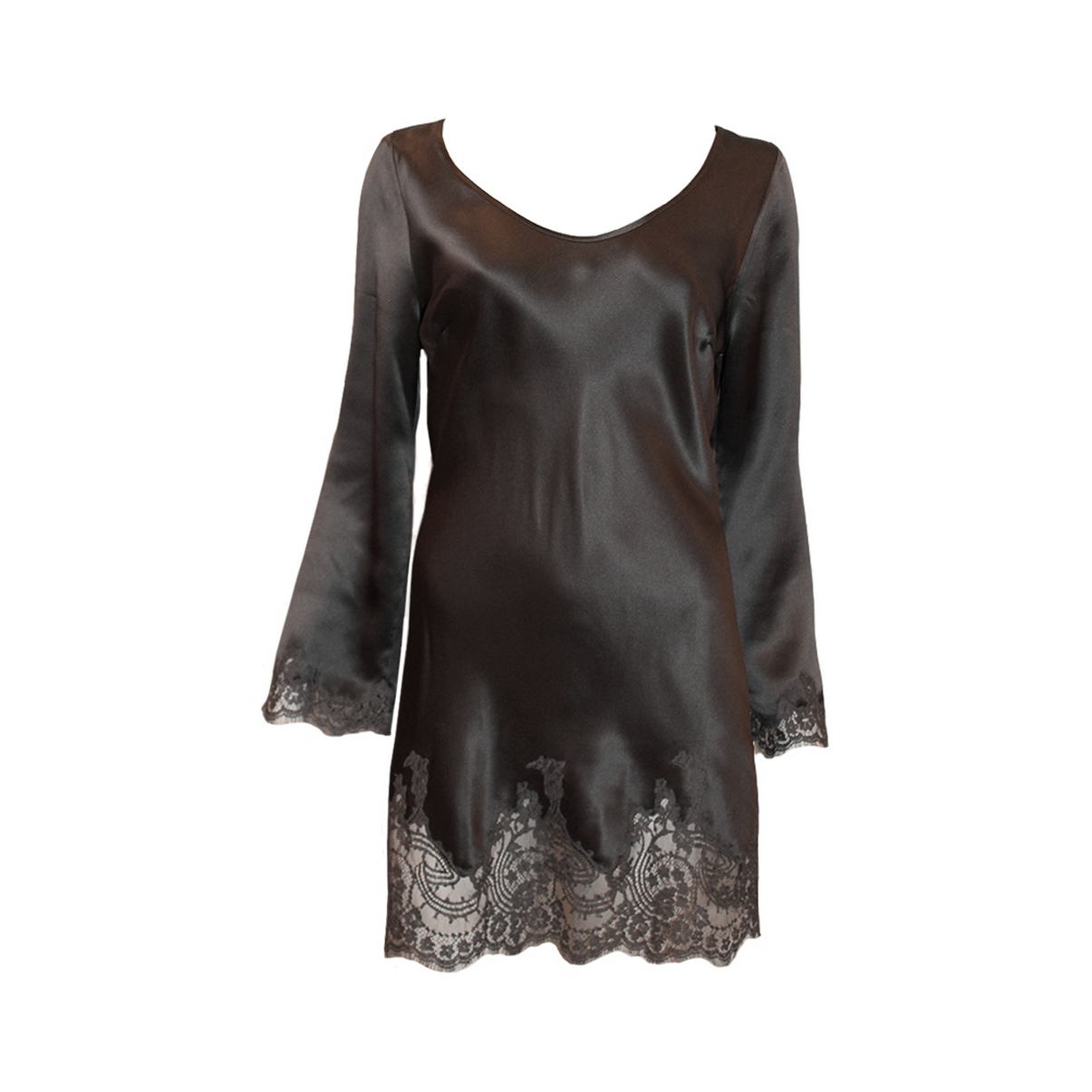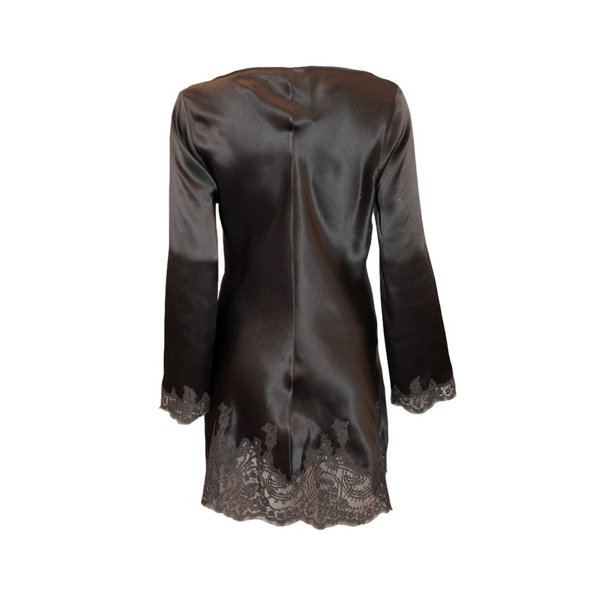 Шовкова сукня з довгим рукавом, виконана з найніжнішого шовку і кращого мережива "Кале". Низ виробу обрамляє мереживо.