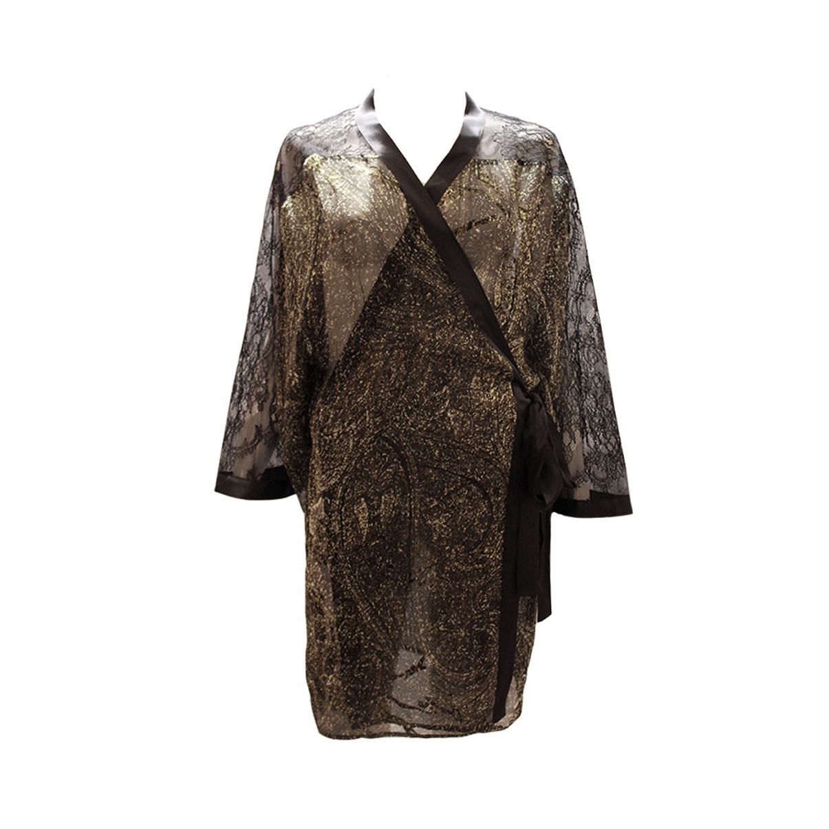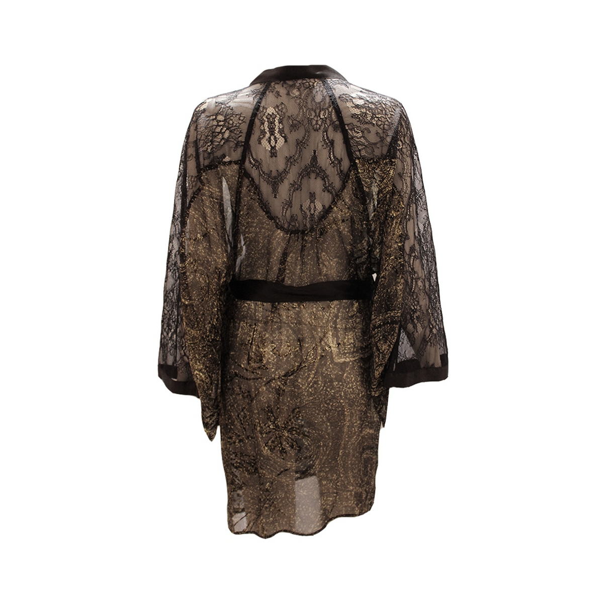 Шифоновий халат у стилі кімоно, рукави та спинка декоровані мереживом, що перетворюють халат на витвір мистецтва.