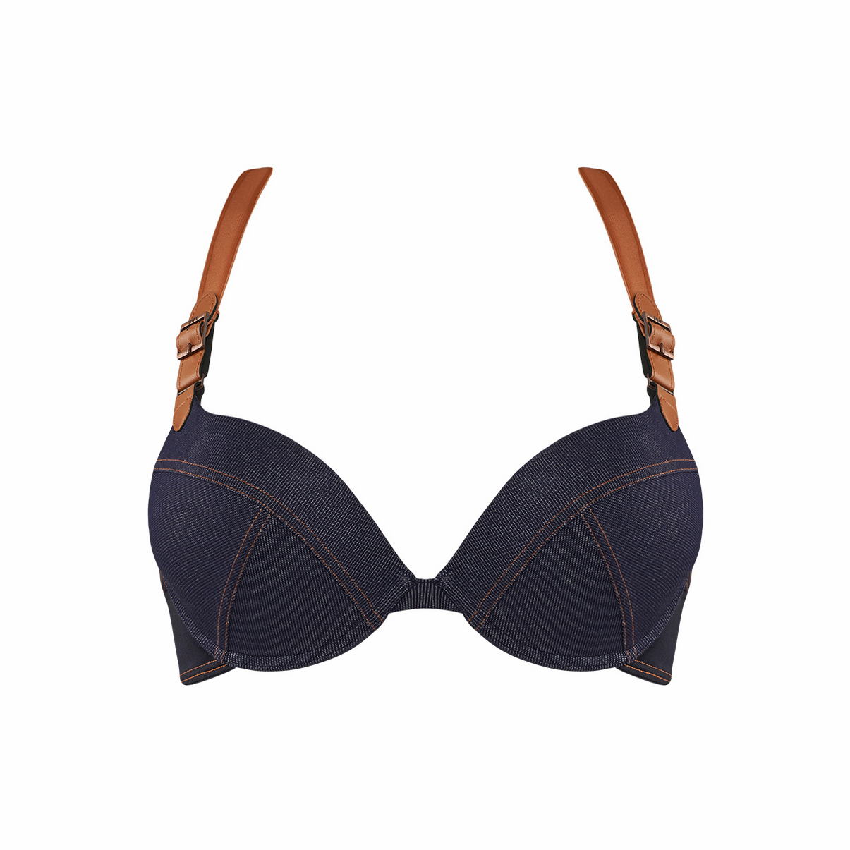 Бюстгальтер пуш-ап із щільною чашкою та дуже глибоким та відвертим вирізом. Завдяки маленьким вкладишам у чашках та спеціальної конструкції кісточок, він злегка піднімає та зсуває груди до центру. Бретелі, що перехрещуються на спинці, стилізовані під шкіряні ремінці. Дуже відверта та сексуальна форма.