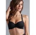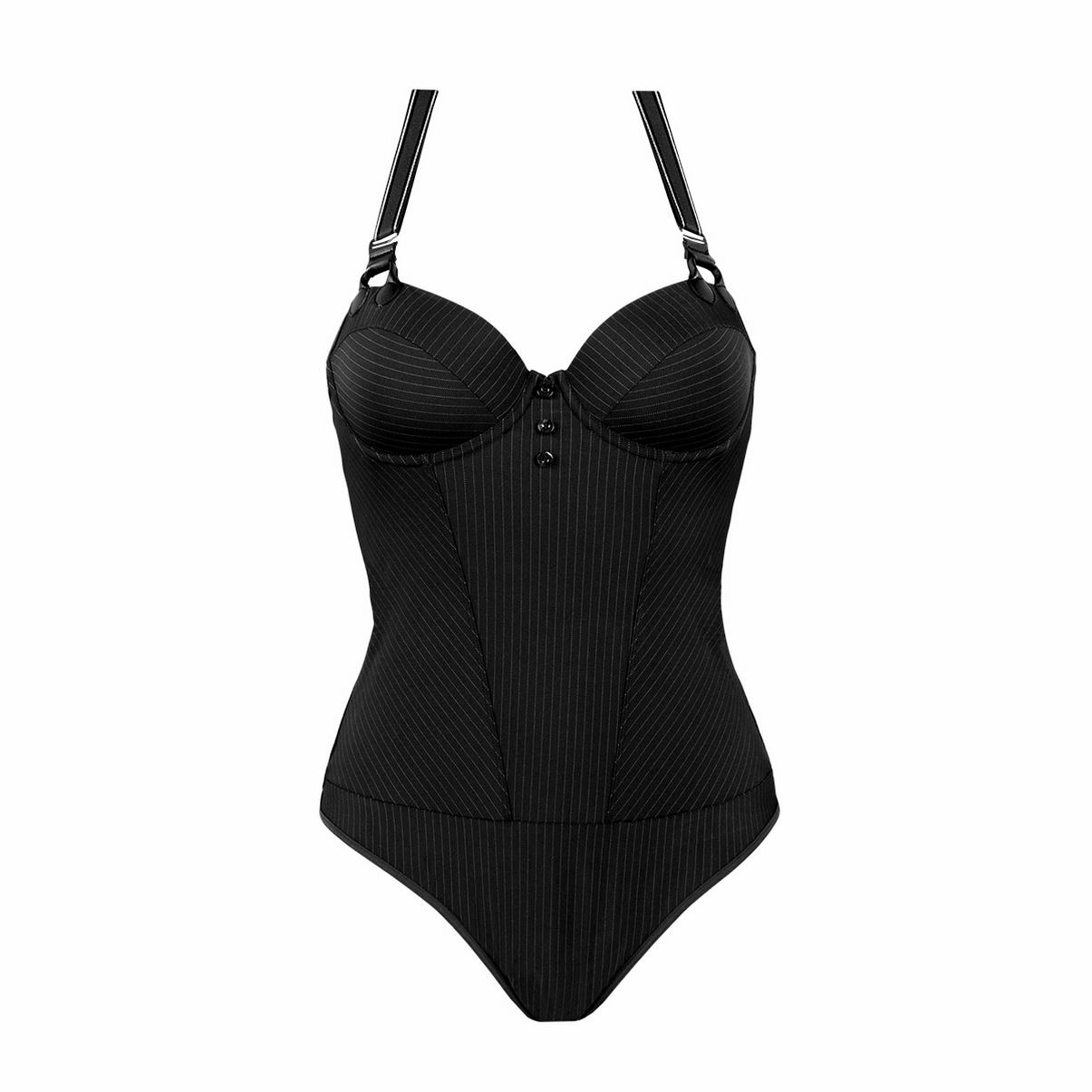 Боді з ліфом балконет з глибоким вирізом та вкладишами має зручну форму та прекрасну посадку. Кісточки бюстгальтера частково підтримують груди знизу, формуючи невелику, але спокусливу впадину. Перехресні бретелі з оригінальним кріпленням спереду, Пах частково прикритий, зручна застібка-гачок.