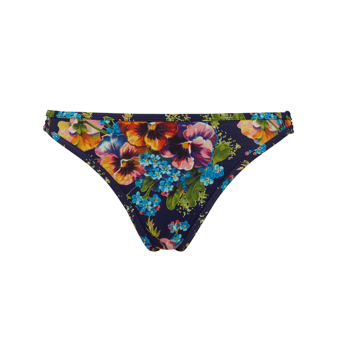 "Кокетливі квіти на пляжі? Коли ви побачите мою колекцію Jardin des Fleurs, Ви скажете: «Так, будь ласка!». Просто додайте води до цього казкового дизайну, який поєднує в собі чудову посадку та розкішні деталі, такі як золотисті аксесуари на бретелях. І заключний запаморочливий штрих — чудовий бант, який я розмістила в самому серці Вашого декольте. Носіть мою колекцію Jardin des Fleurs і наважтеся розквітнути!