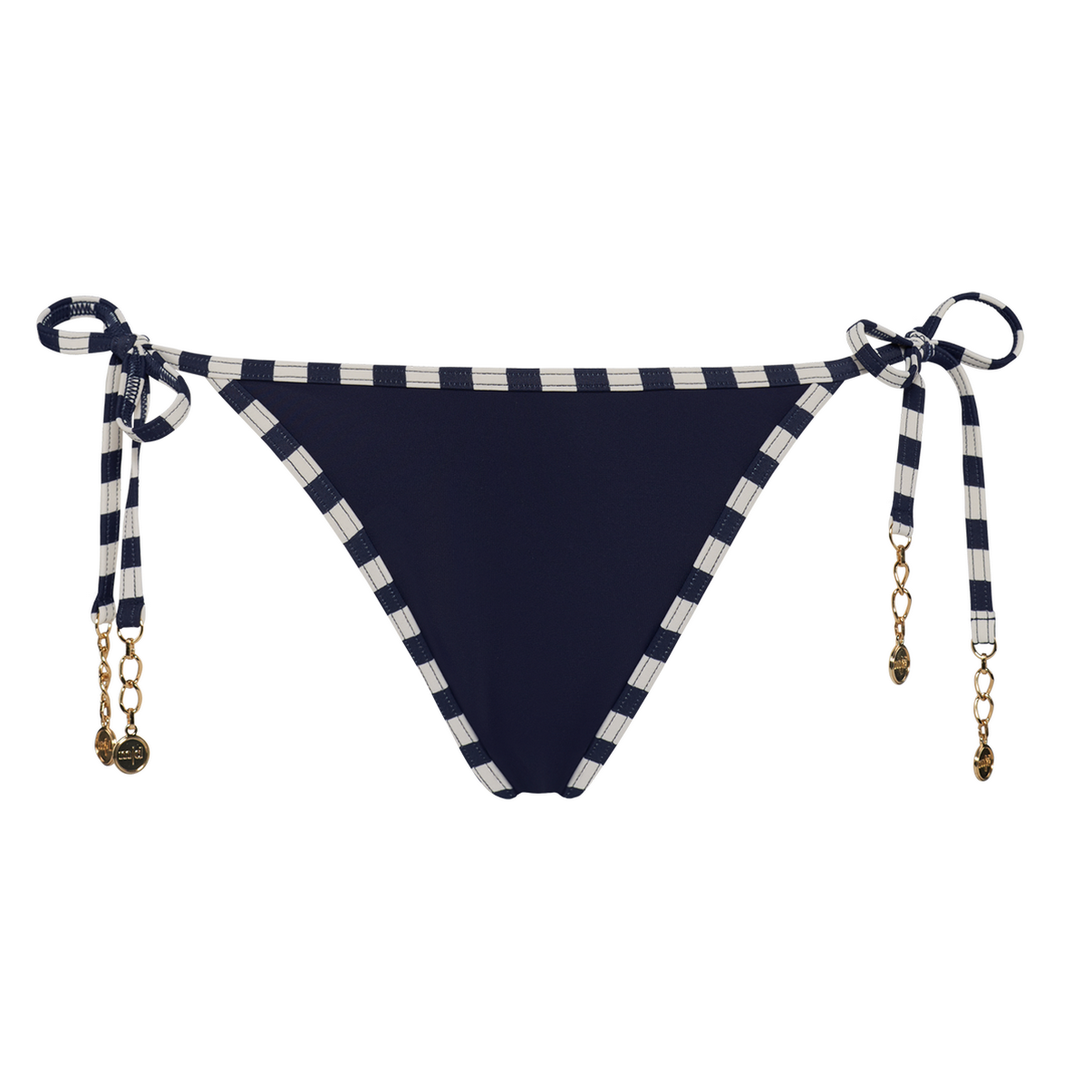 Труси - бікіні із заниженою посадкою на зав'язках. Задня панель у смужку.