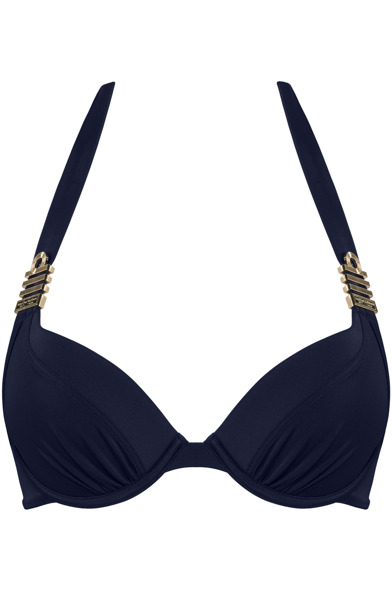 Колекція Royal Navy від Marlies Dekkers створена для Капітанш! В розкішному темно-синьому кольорі вона ще більше підкреслить Вашу фігуру. А через те, що Ви вже заробили свій знак Капітанші (який розмістився на бретелях), Дизайнерка додала ще й декоративні гудзики у "морському" стилі. Наважся відчути себе Капітаншею власного плавання!