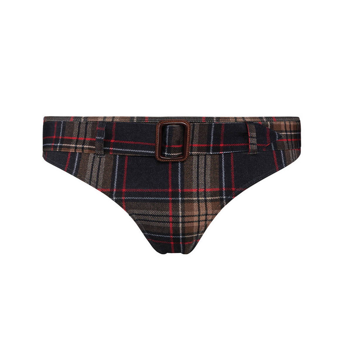 Труси-стрінги із середньо-заниженою посадкою повністю виконані з тканини з набивним малюнком. Передню панель доповнено декоративним поясом.