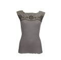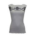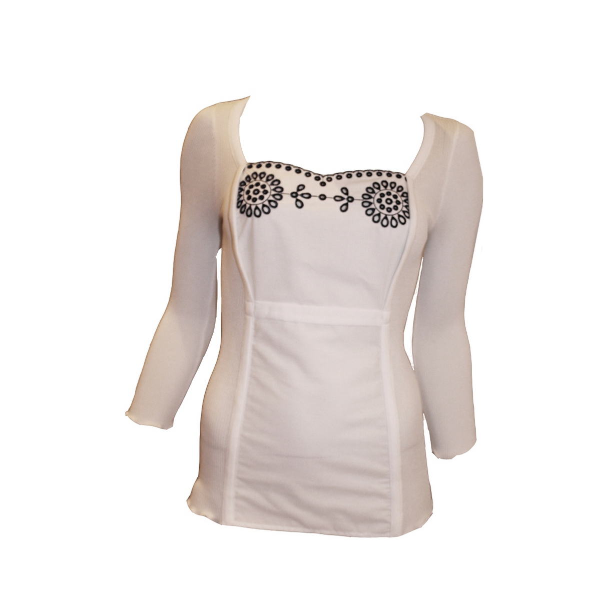 Кофта з довгим рукавом. Передня панель із ситцю виконана в тон виробу, з вишивкою – рішельє. Низ виробу та рукава - оверлок.