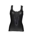 Майка на тонких, регульованих бретелях. Виріб виконаний із безшовного трикотажного полотна. М'яке еластичне мереживо по лінії декольте. Низ - оверлок.