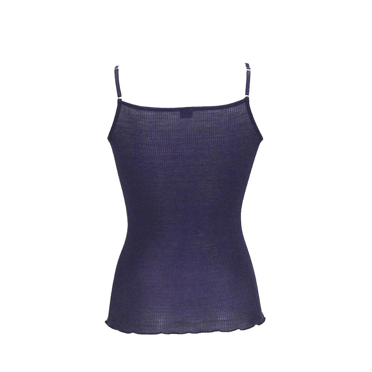 Майка на тонких регульованих бретелях. Застібка по центру до середини на маленьких ґудзиках у тон виробу. Модель прикрашена з боків широкими смужками мережива. Низ виробу – м'який волан.