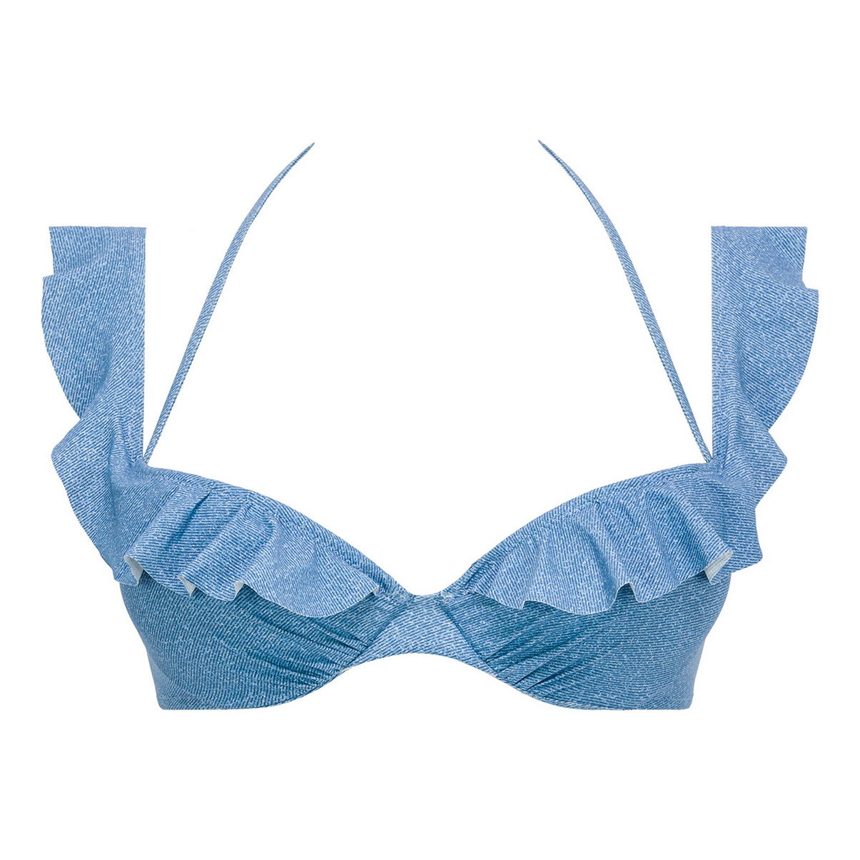 Чудовий пуш ап, злегка "призібраний" по-нижньому та боковому краю, з ущільненою формою чашок та невеликим шаром мусу. Верхній край чашок і бретельки виконані у вигляді легких крилець і додаткова тонка шнурочка бретелька на шию,