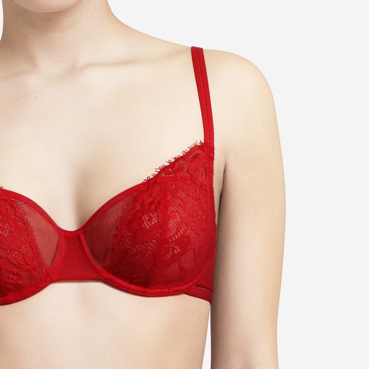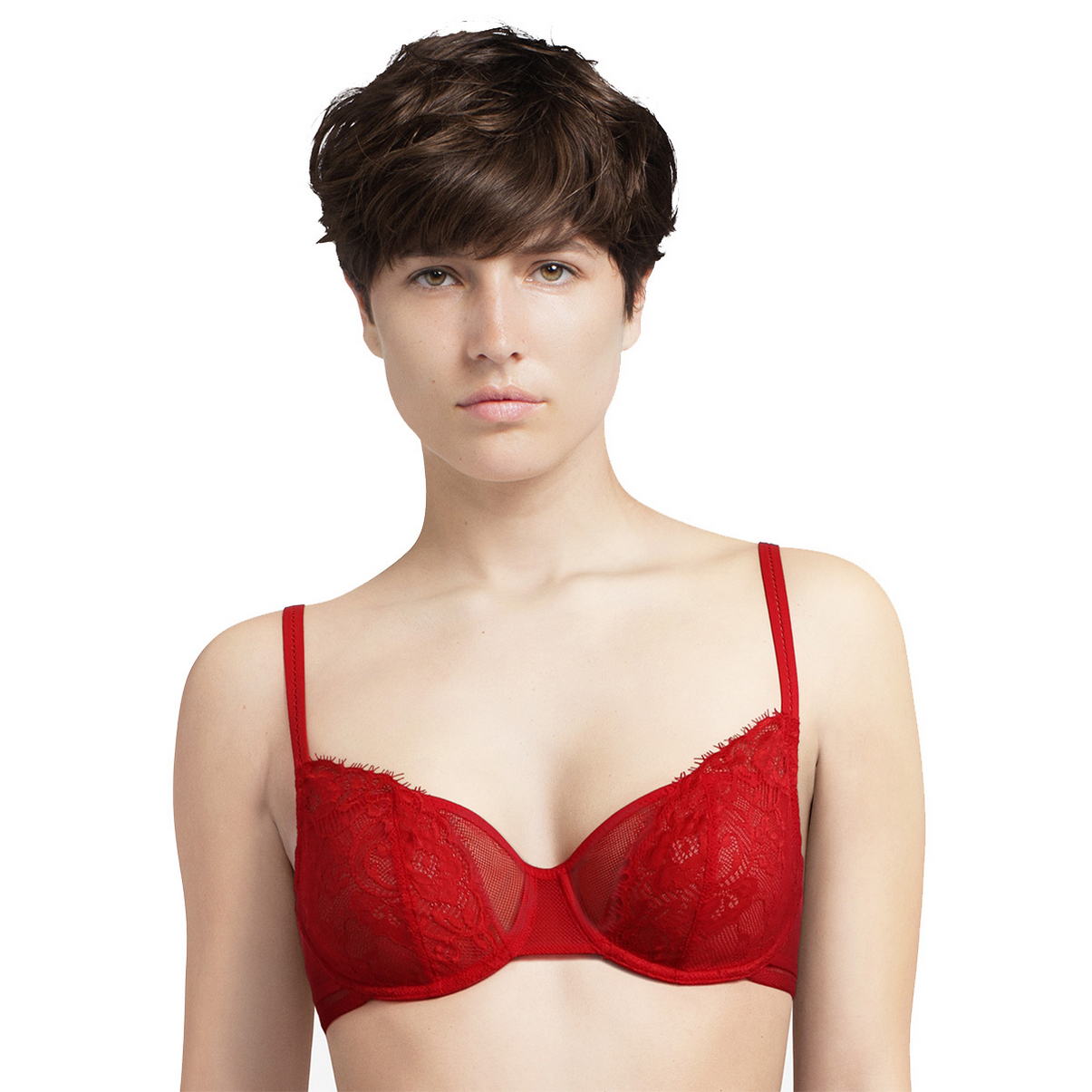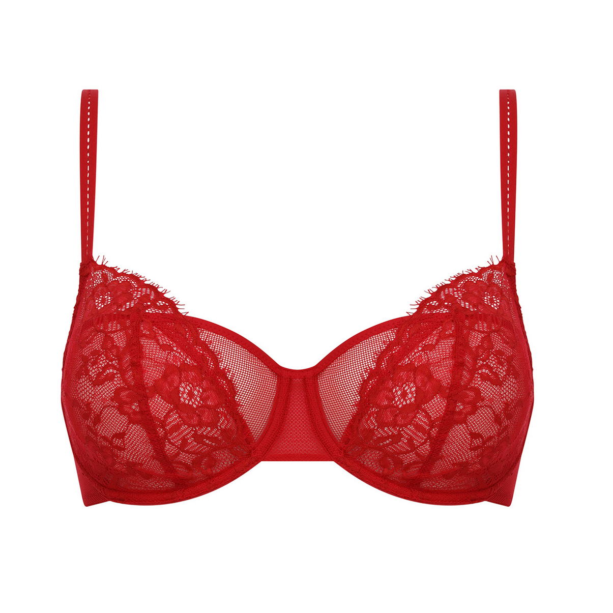 Бюстгальтер-балконет з м'якою формою чашок на кісточках. Чашки виконані з сітки та вкриті мереживом з квітковим орнаментом для надання жіночності та додаткової підтримки. Декоративні бретелі, що регулюються.
