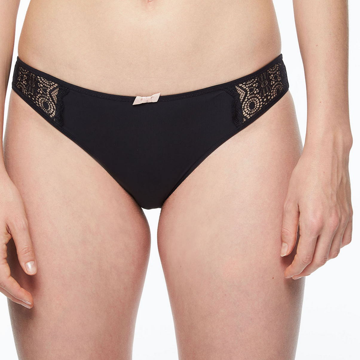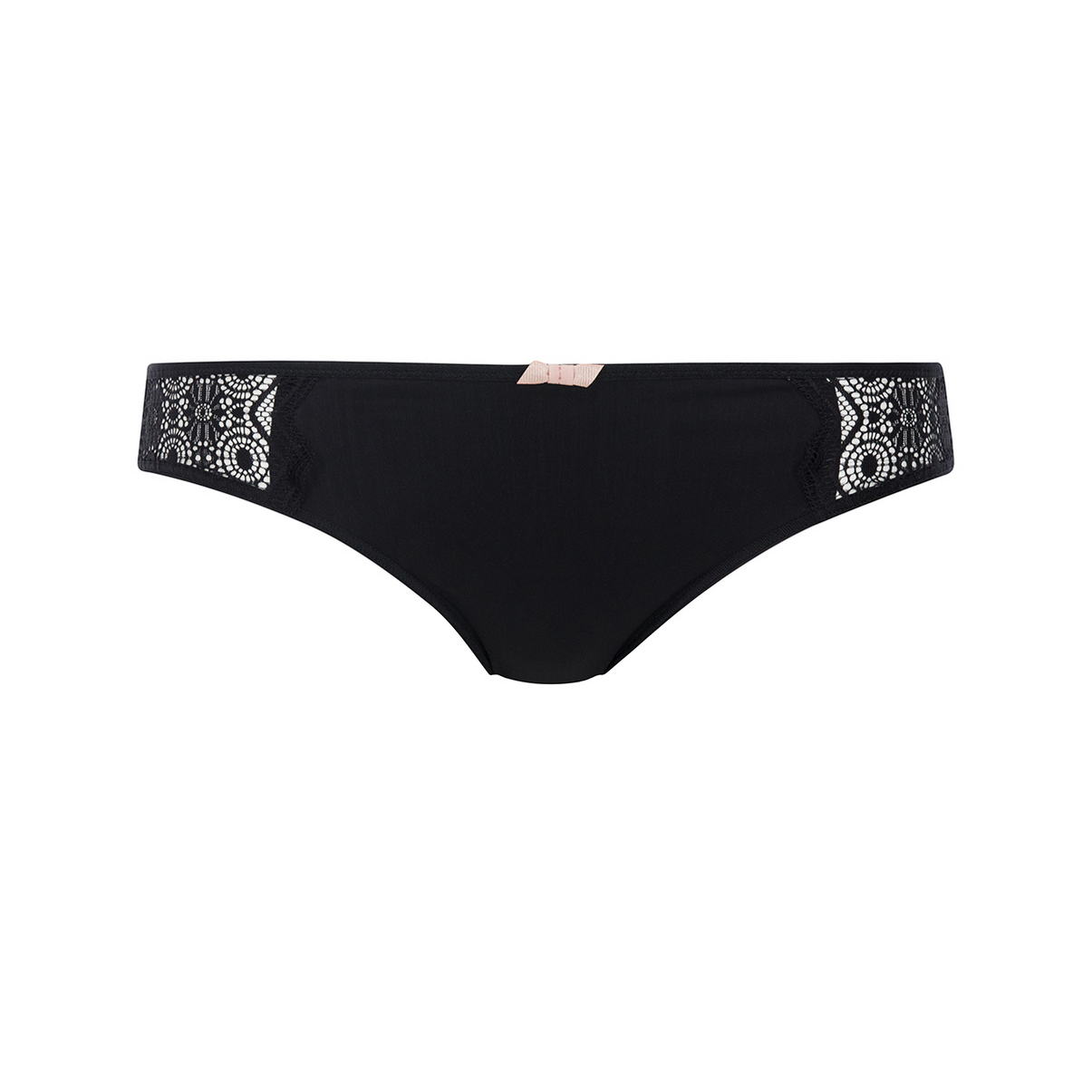 Труси-бікіні із середньо-заниженою посадкою. Передня панель виконана з мікрофібри та декорована мереживними вставками з боків. Задня панель повністю із мікрофібри.