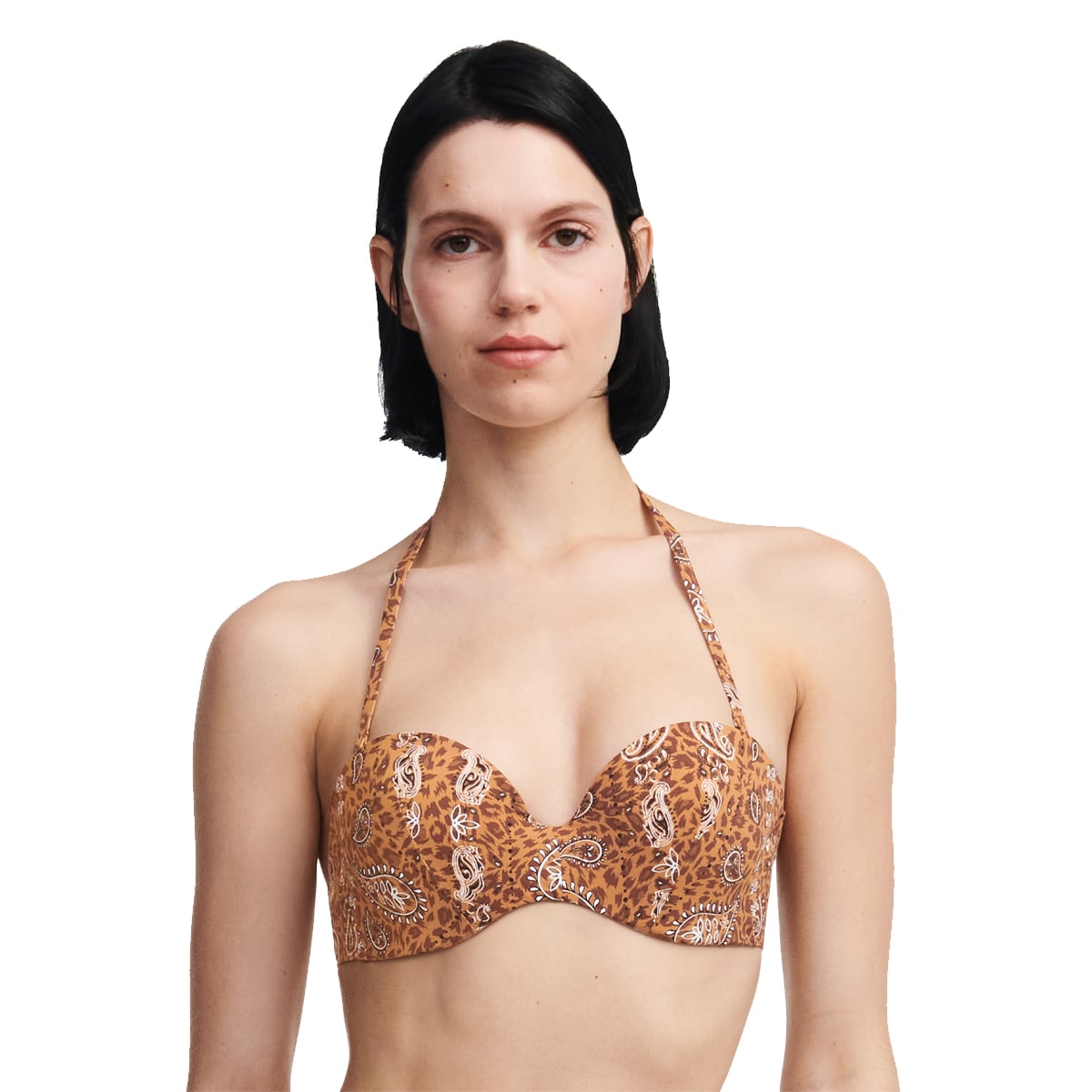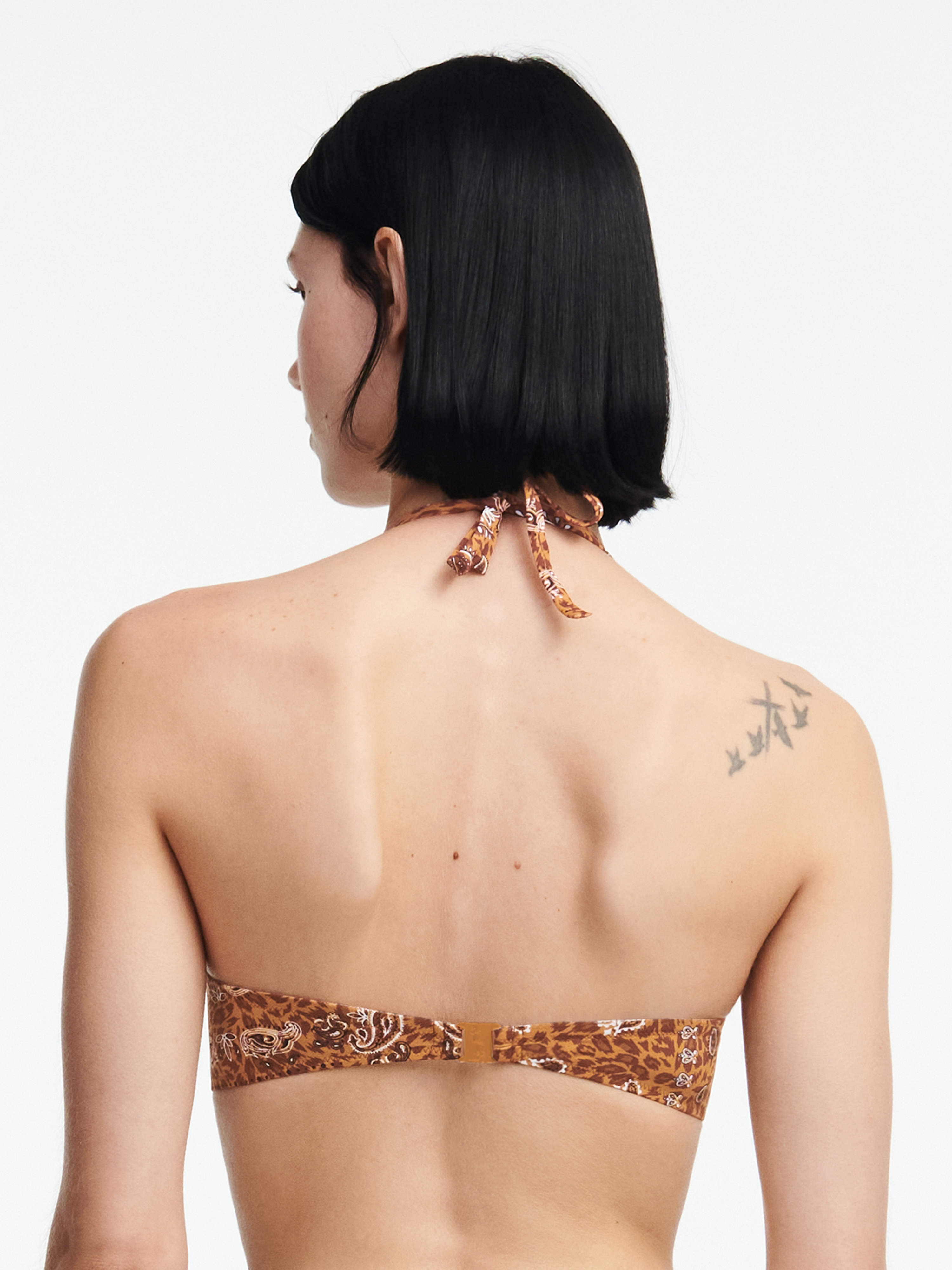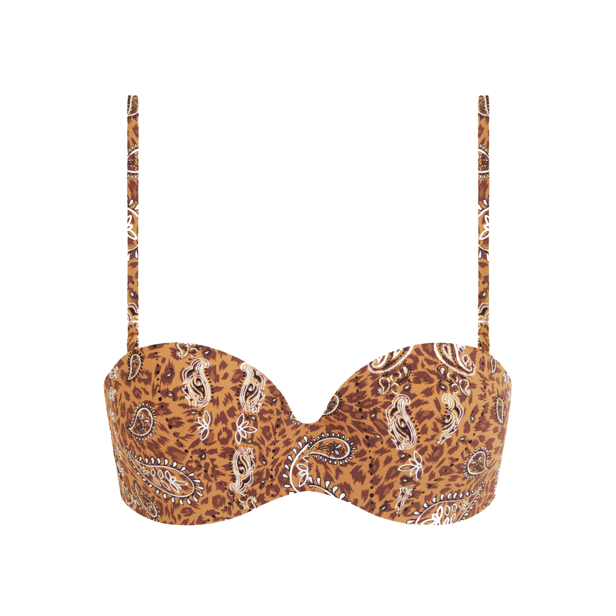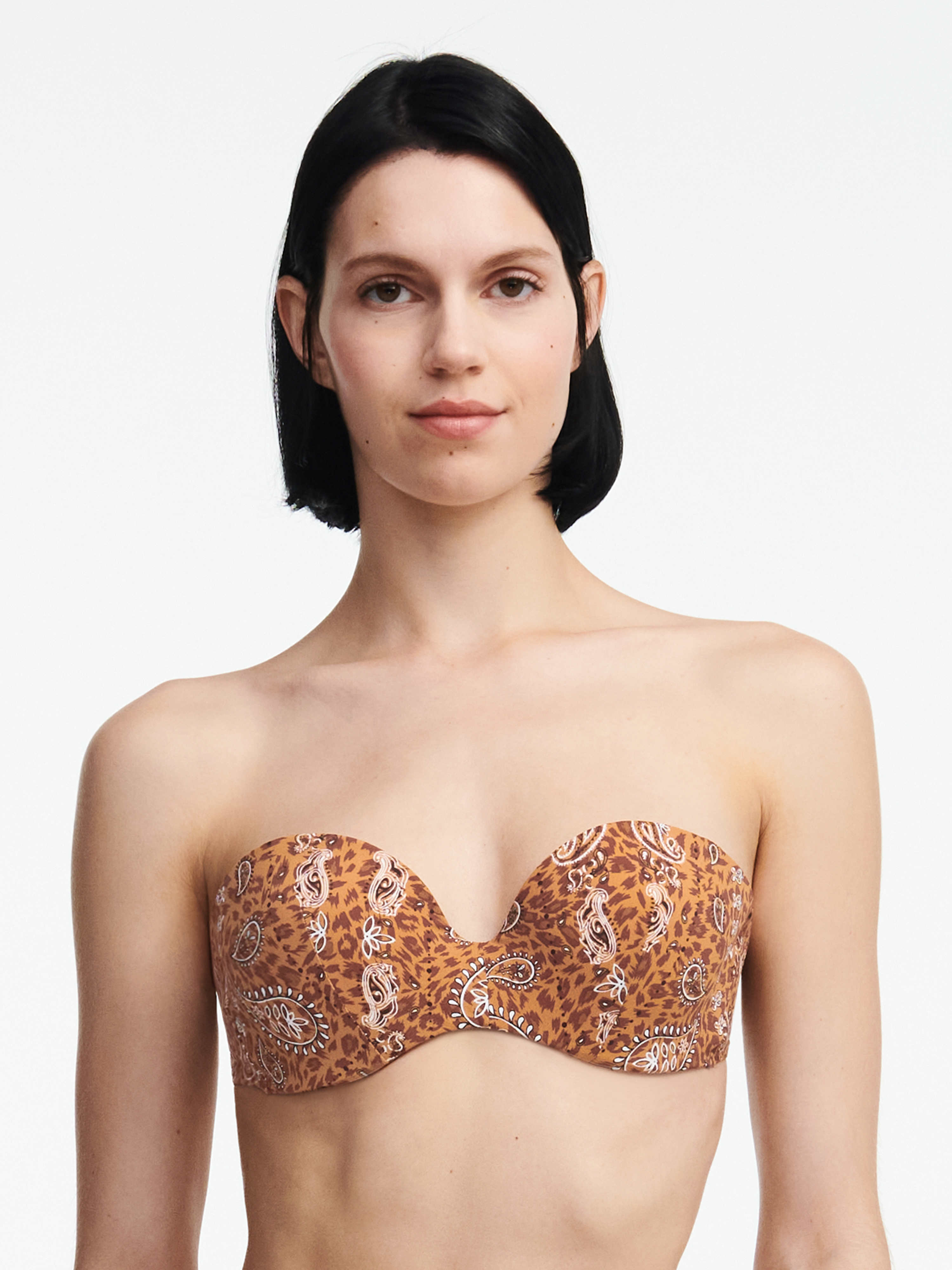 Бюстгальтер - бандо зі злегка ущільненою формою чашок з "прихованими" кісточками. Бічні панелі оснащені силіконовими доріжками. Регулюючі бретелі відстібаються. Застібка ззаду – на кліпсі.