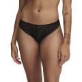 Класичні труси із заниженою посадкою. Повністю виготовлені з непрозорої мікрофібри. Передня панель з боків доповнена вставками з мережива.