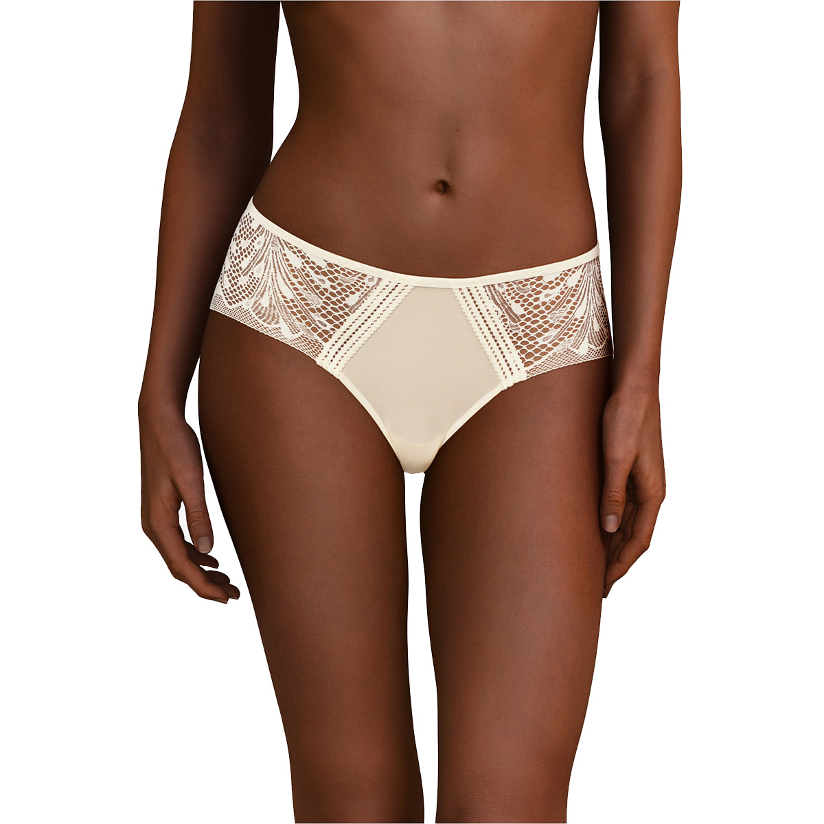 Труси-боксери із середньо-заниженою посадкою. Передня панель виконана з мікрофібри, бічні та задня панелі – з вишуканого гіпюру з квітковим орнаментом.