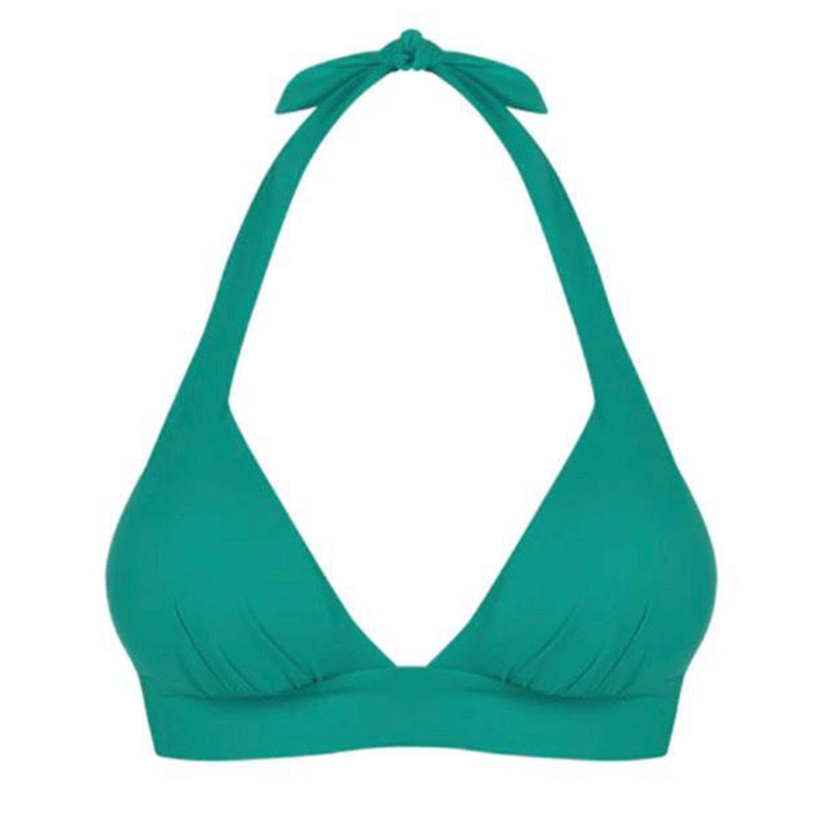 Бюстгальтер пуш ап з трикутною формою чашок без кісточок, з подушками, що виймаються. В основі чашок тканина злегка призібрана. Широкі бретелі зав'язуються довкола шиї.