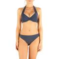 Бюстгальтер з м'якою трикутною формою чашок, які оснащені подушками, що виймаються, без кісточок. Основа бюстгальтера – широка тасьма під грудьми, що забезпечує додаткову підтримку. Широкі бретелі, що регулюються. Ця модель бюстгальтера, виконана в стилі спорт-шик, гарантує Вам шикарний вигляд та відмінну підтримку.