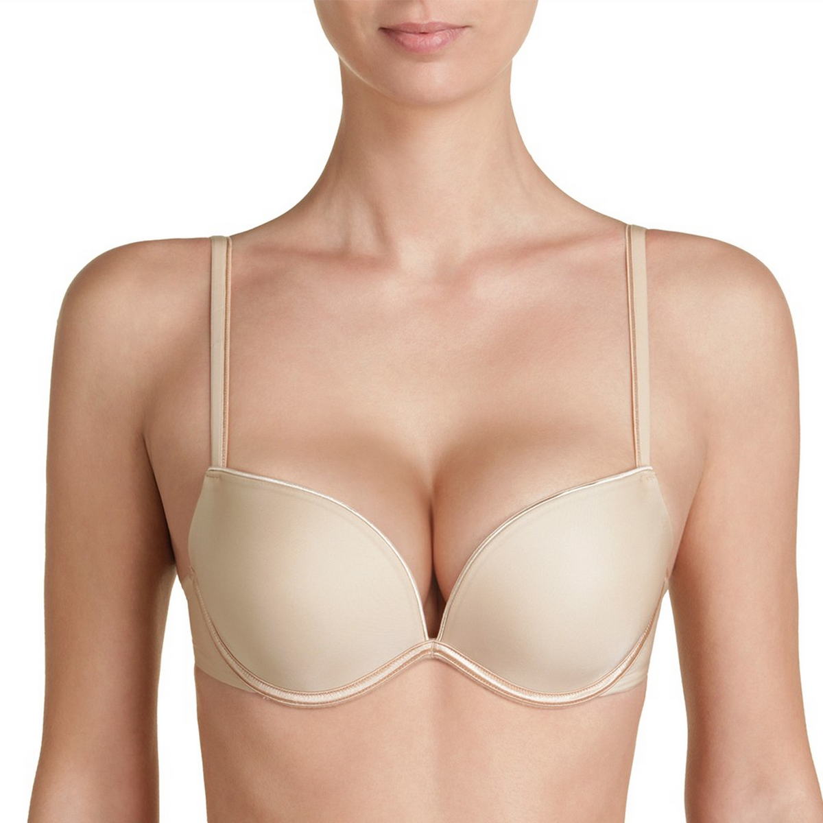 Гладкий бюстгальтер, виконаний з м'якої мікрофібри, буде абсолютно невидимим під Вашим одягом. Завдяки подушкам, які наповнені гелем та повітрям, Ви зможете отримати додатковий об'єм до двох розмірів. Можливість перестібання бретелів на спині для адаптації під Ваш одяг.