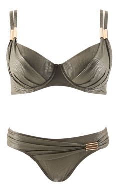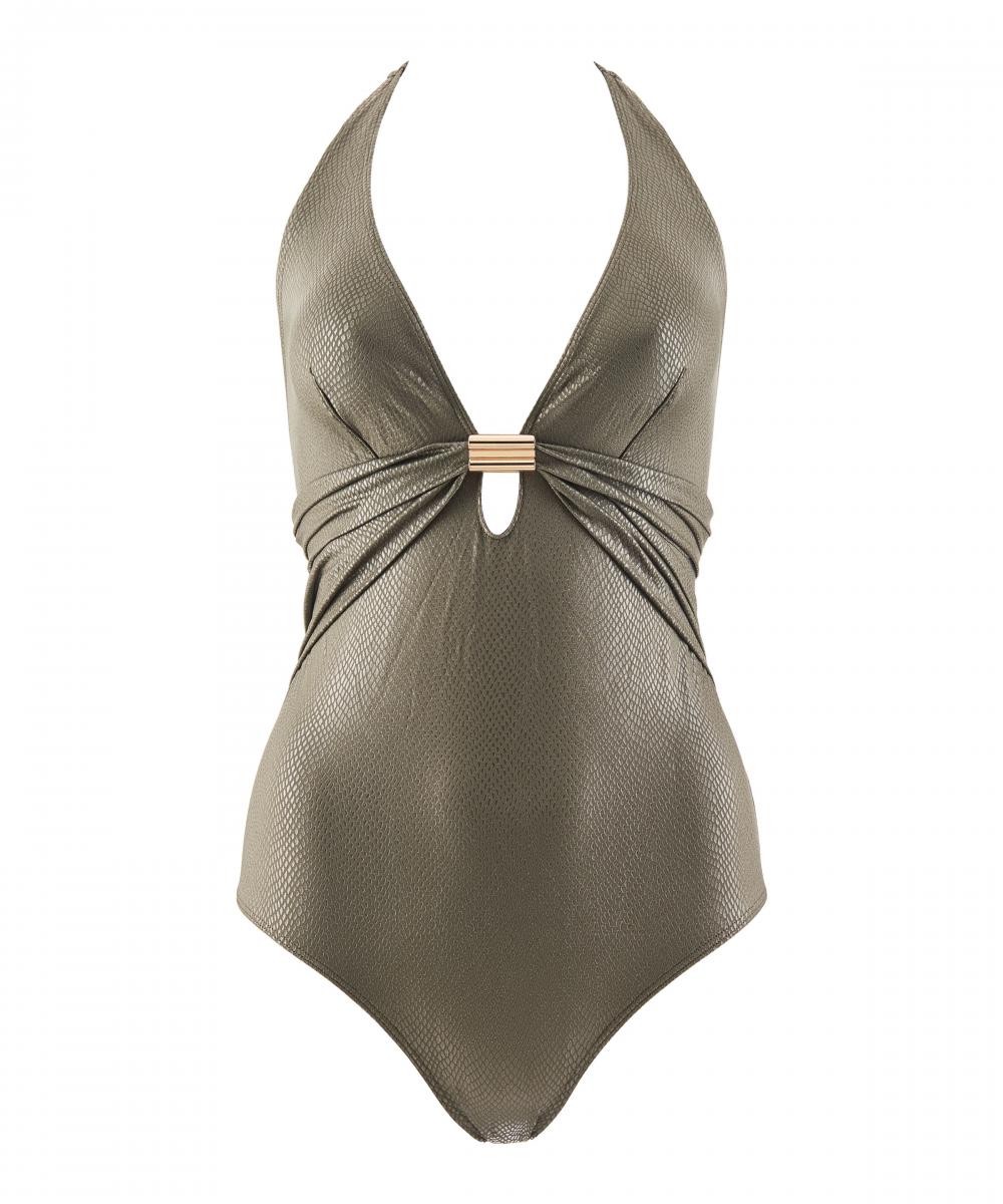 Монохромные новинки от Aubade повторяют узор змеиной кожи и придают груди дополнительный объем за счет драпировки. Металлические детали поддержат своими бликами сияющий лук. А насыщенный черный цвет и приглушенный хаки превосходно впишутся в образ в стиле сафари и дополнят замшевые шнурованные босоножки и сдержанную шляпку.