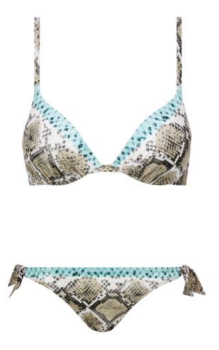 Имитация причудливого рисунка кожи питона выглядит свежо и притягательно, особенно красиво этот тренд сочетается со знойным загаром. Линия Jungle от Chantelle — это взрыв чувств замиксованный с лаконичностью. Лиф с треугольной чашкой и трусики на завязках подчеркнут самые привлекательные изгибы тела — сексуальности не бывает too much. Пляжная туника станет идеальным завершением расслабленного образа бронзовой богини.