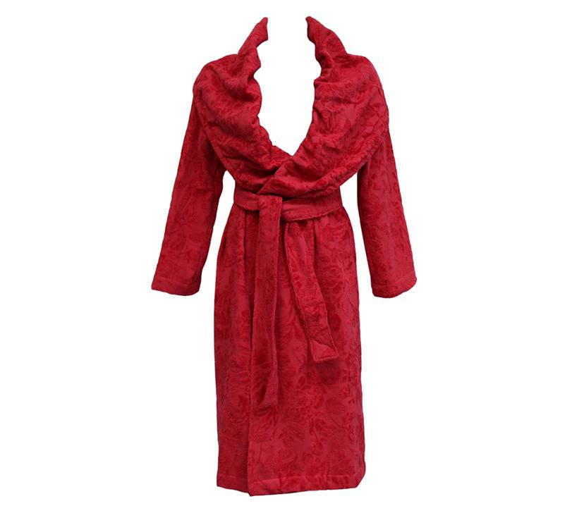 Если Вы не нарушаете модные правила даже дома, следуйсте тренду вместе с халатом Cesello бренда Luna di Giorno. Главный цвет сезона красный гренадин и архитектурные волнистые края превращают модель в must have для самых стильных домашних образов.