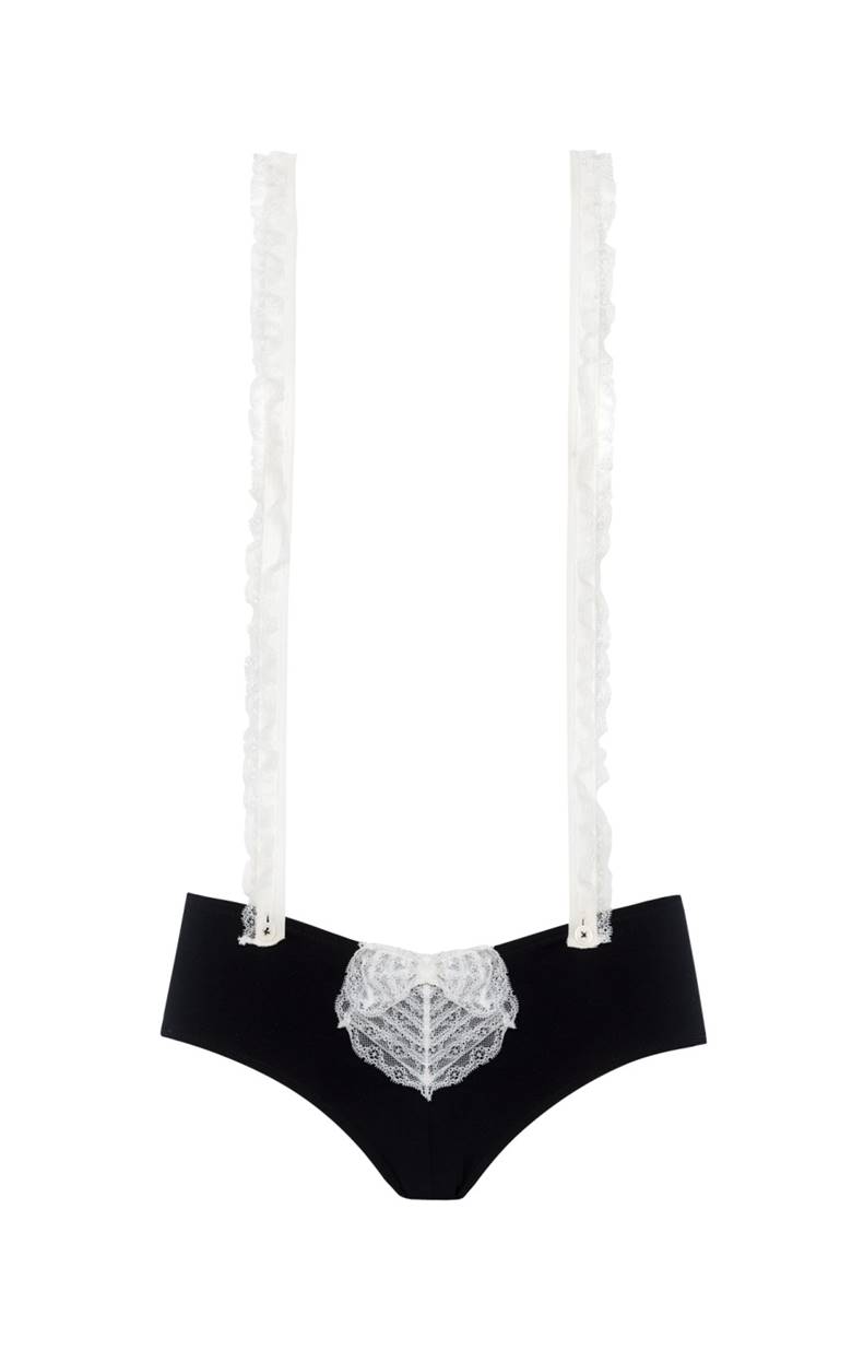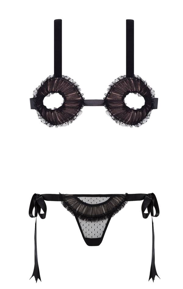 Линия Polissonne от Chantal Thomass будоражит фантазию кокетливыми бантами. Игривый декор нижнего белья вдохновляет перевоплотиться в образ примы кабаре и исполнить сольную партию для избранника. Если и сменить наряд во время шоу, то только на черный комплект Craquante - провокативный бюстгальтер создает верный антураж для кульминации выступления!