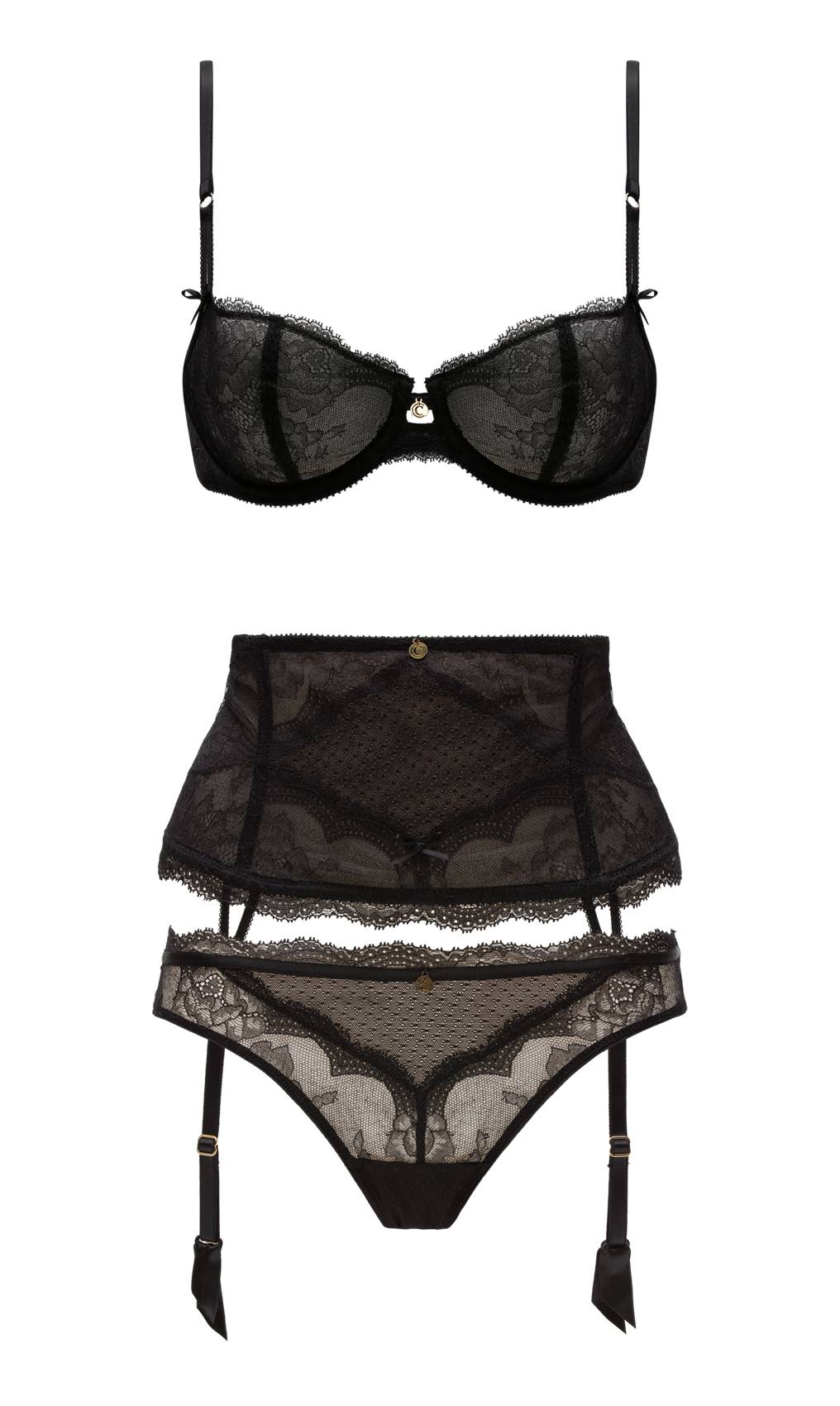 Пояс для чулок из линии Presage от Chantelle в стиле ретро - вдохновляет разучить один из танцев Мулен Руж. Комплект - синоним изысканного обольщения, его декор - расшитое фриволите haute couture поможет исполнить танец с шиком. Бюстгальтер выполнен из кружева и деликатно обрамлен шнуровкой, подчеркивающей одновременно утонченный вкус обладательницы и ее грацию.