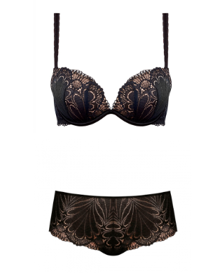 Бюстгальтеру обсидианового оттенка проще всего найти пару в виде трусиков: модели от Aubade, marlies|dekkers, Chantelle и Wonderbra отлично сочетаются с похожими по цветовой гамме от Chantal Thomass, Wonderbra, и DIM. Черный цвет позволяет экспериментировать и выбирать к бюстгальтеру любимый фасон трусиков и стиль их отделки — кружевные, бесшовные или модели из тюля.