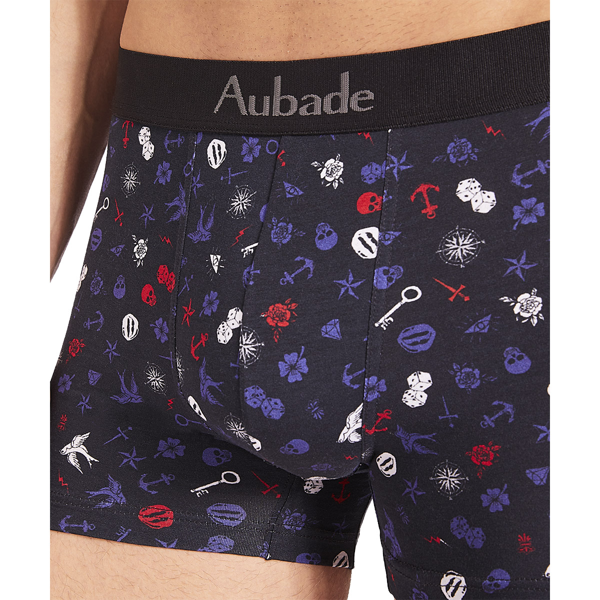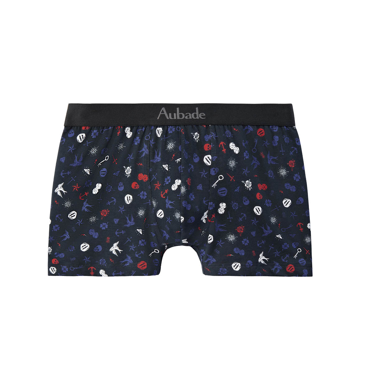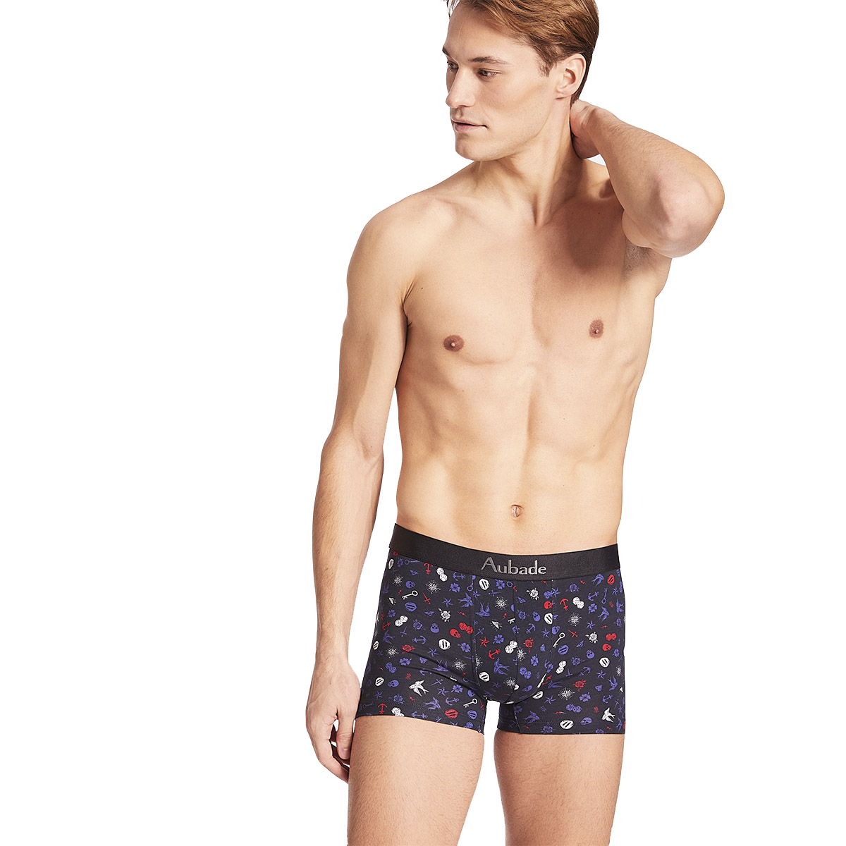Трусы - боксеры выполнены из хлопка и модаля с оригинальным принтом. Эластичный пояс с логотипом Aubade. Передняя панель дублирована. Для максимального комфорта - боковые стороны бесшовные.