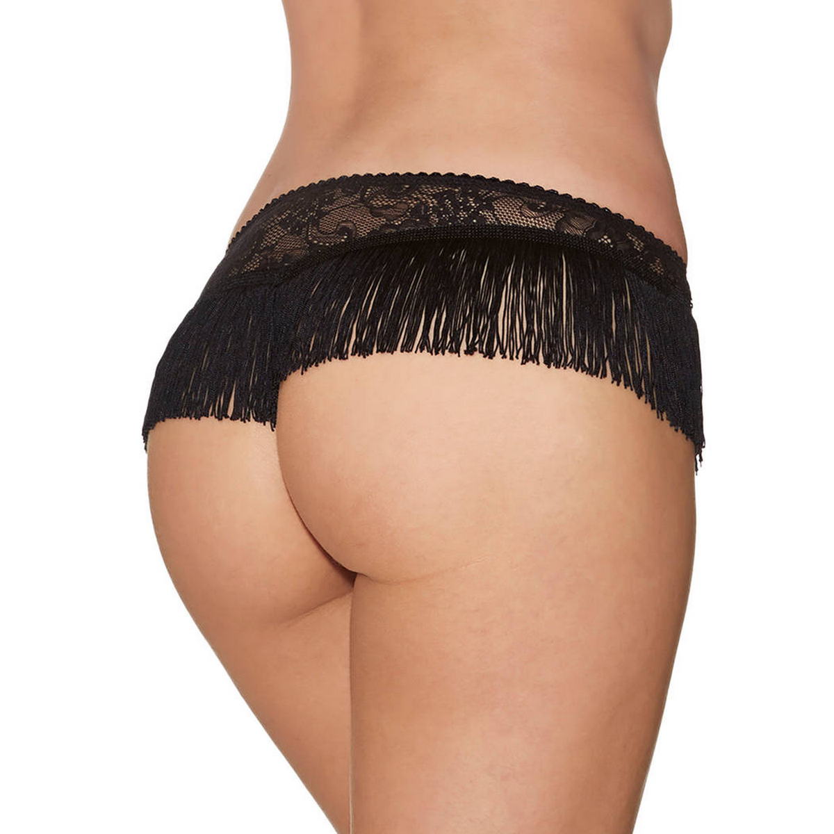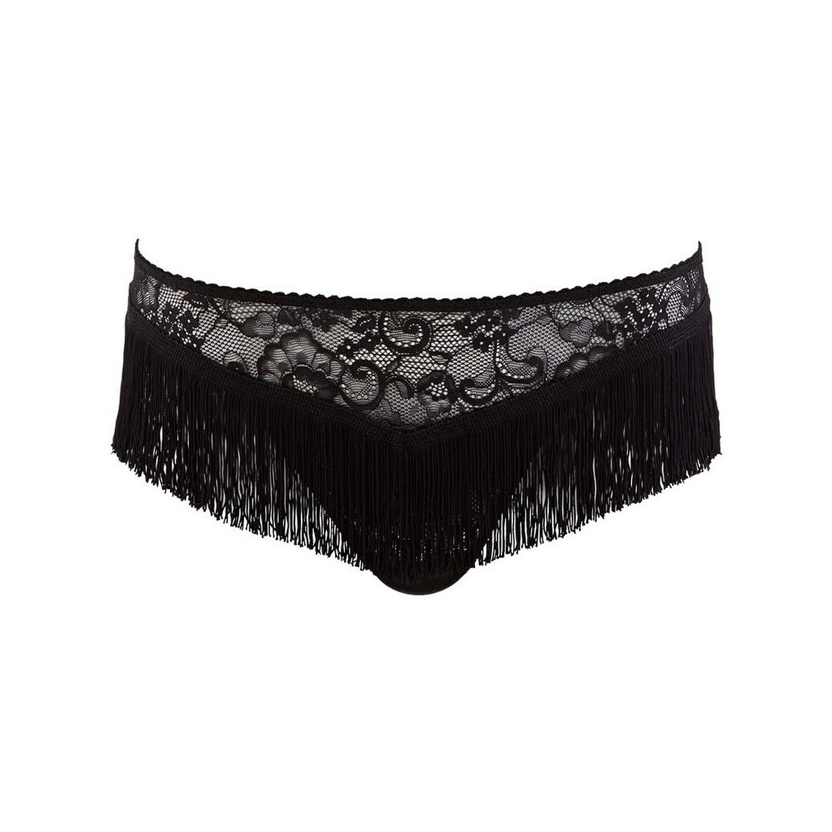 Трусы-боксеры полностью выполнены из кружева и декорированы бахрамой.
