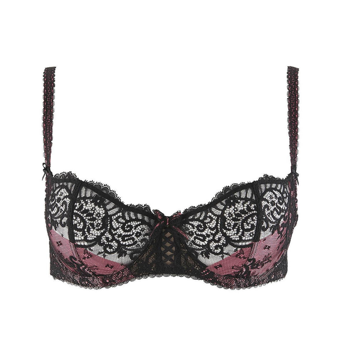 Courbes Divines (Удивительные кривые). Линия выполнена из роскошного кружева Leavers de Calais. Изысканные детали поддчеркивают каждое изделие: маленький бантик, гламурная, но сдержанная шнуровка, вставки из атласной ткани на бюстгальтерах. Игра прозрачности материалов пробуждает чувственность и современность, которые были свойствеены эпохе Модерна.
