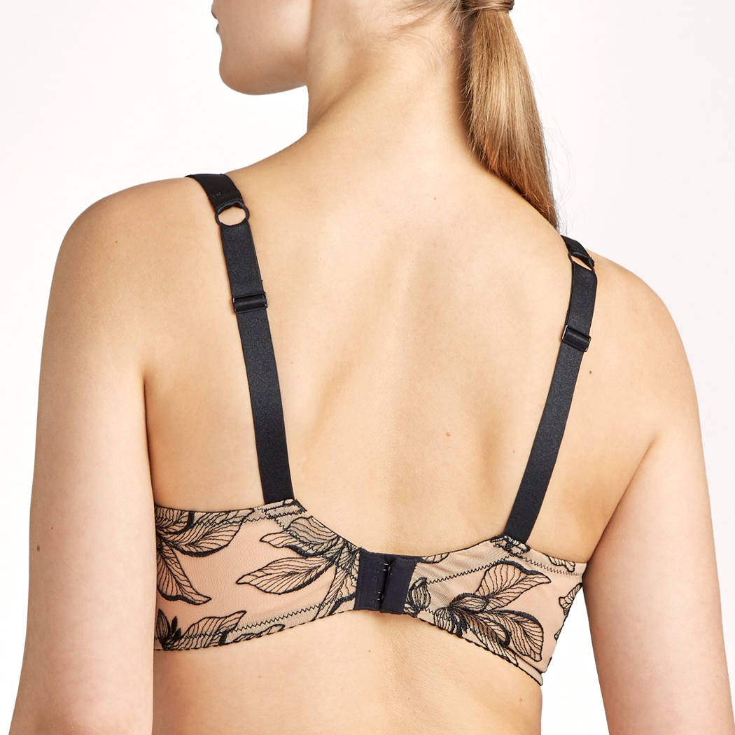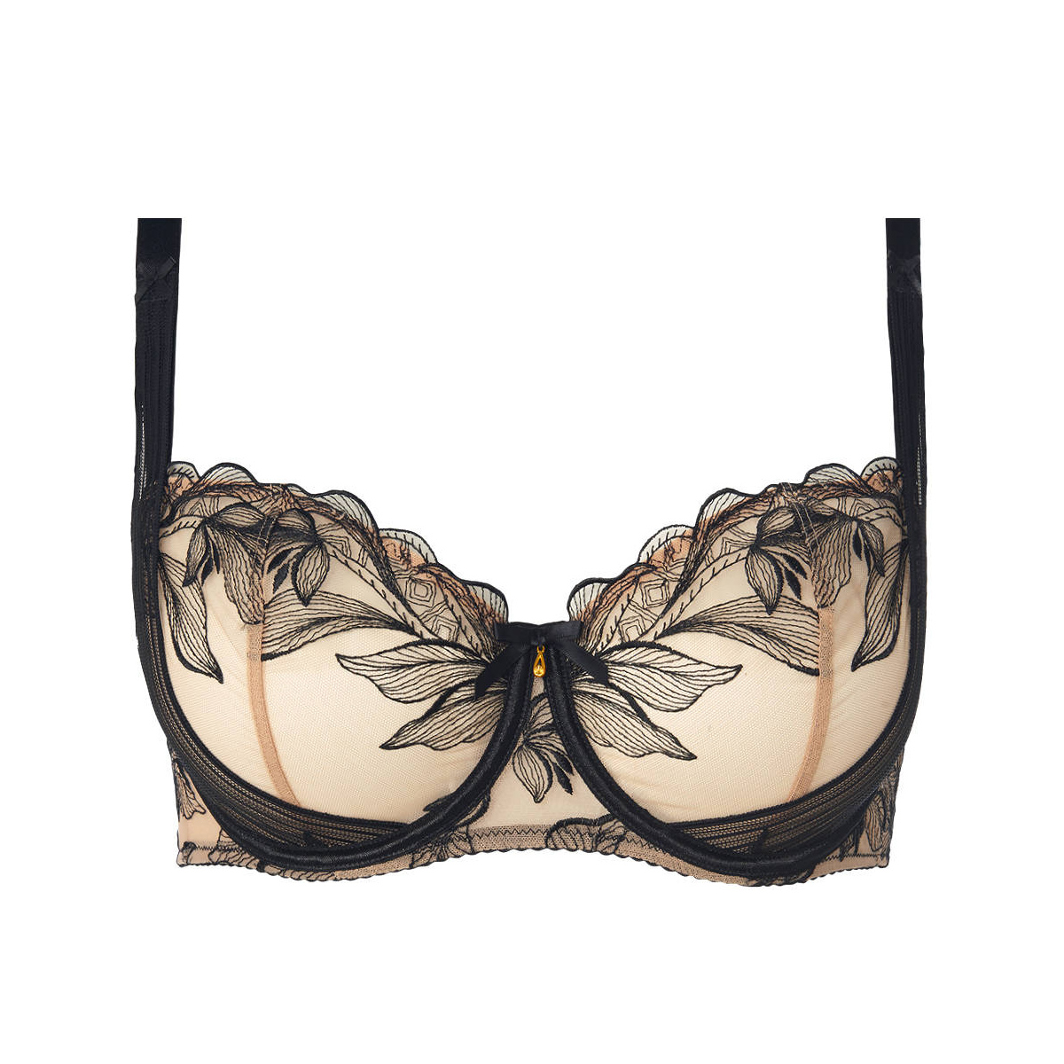 Бюстгальтер-балконет-комфорт, созданный по прототипу известной "анжелики" и предназначенный для большой груди. Бюстгальтер-балконет с мягкой открытой формой чашек на косточках. Чашки выполнены из расшитого цветочным орнаментом тюля, который создает эффект тату на теле и подчеркивает роскошь вышивки. Чашки бюстгальтера, с внутренней стороны дублированы тюлем для придания необходимой поддержки. "Балетная" спинка, регулирующиеся бретели.