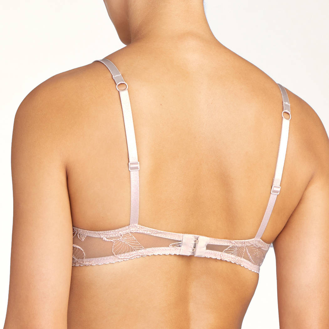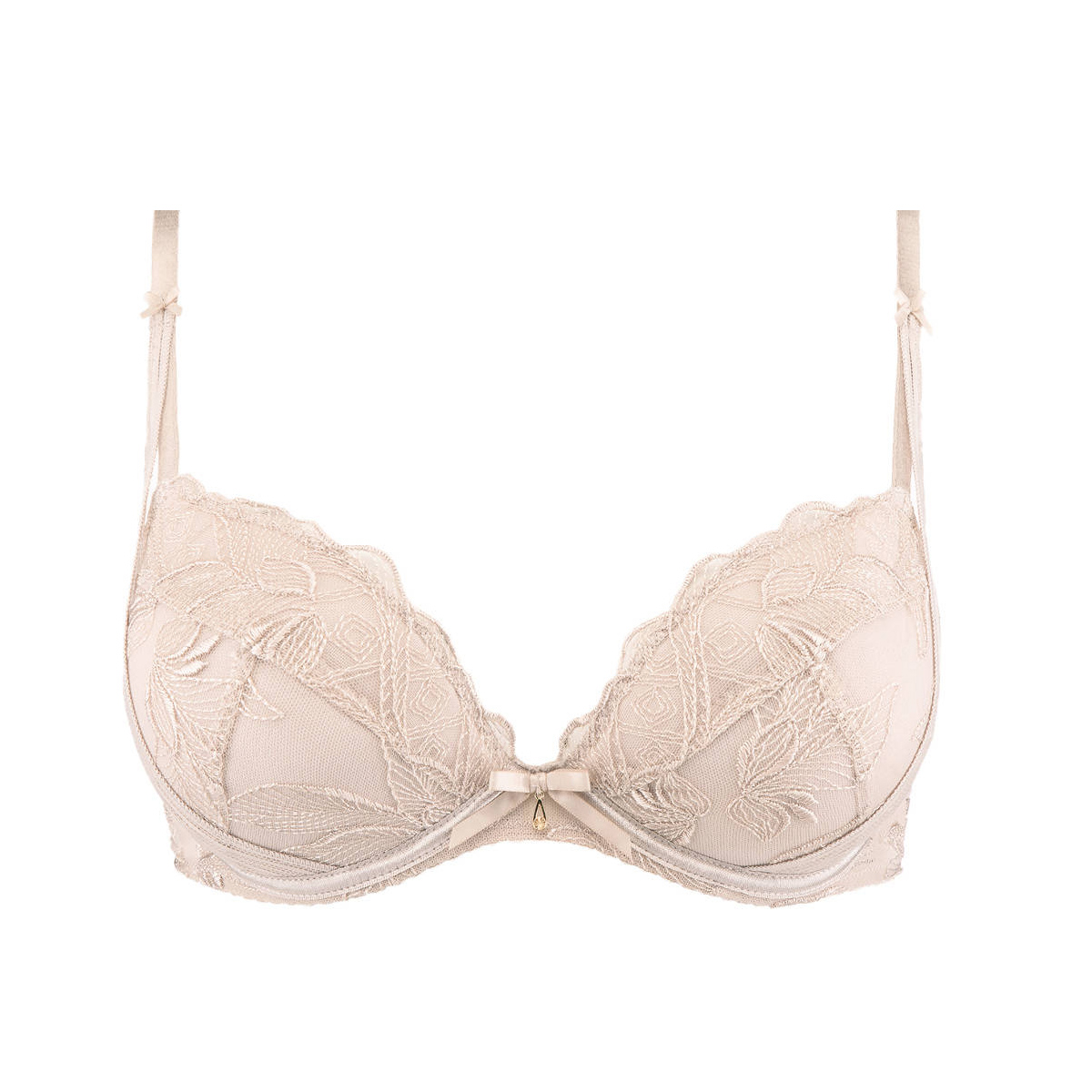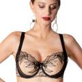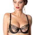 Бюстгальтер - пуш ап с уплотненной формой чашек с вынимающимися подушками, на косточках. Чашки покрыты расшитым цветочным орнаментом тюлем, который создает эффект тату на теле и подчеркивает роскошь вышивки. Регулирующиеся бретели. На центральной панели разместился бантик с небольшим украшением.
