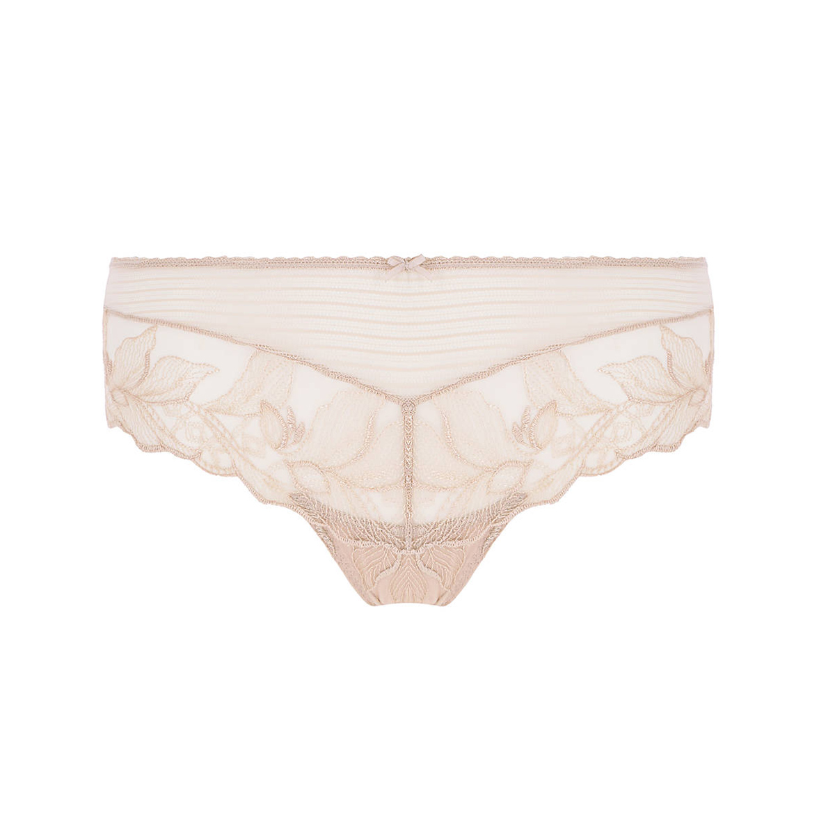 Трусы-боксеры со средне-заниженной посадкой. Передняя и задняя панели выполнены: верхняя часть - из "полосатого" тюля, нижняя - зи тюля с цветочной вышивкой.