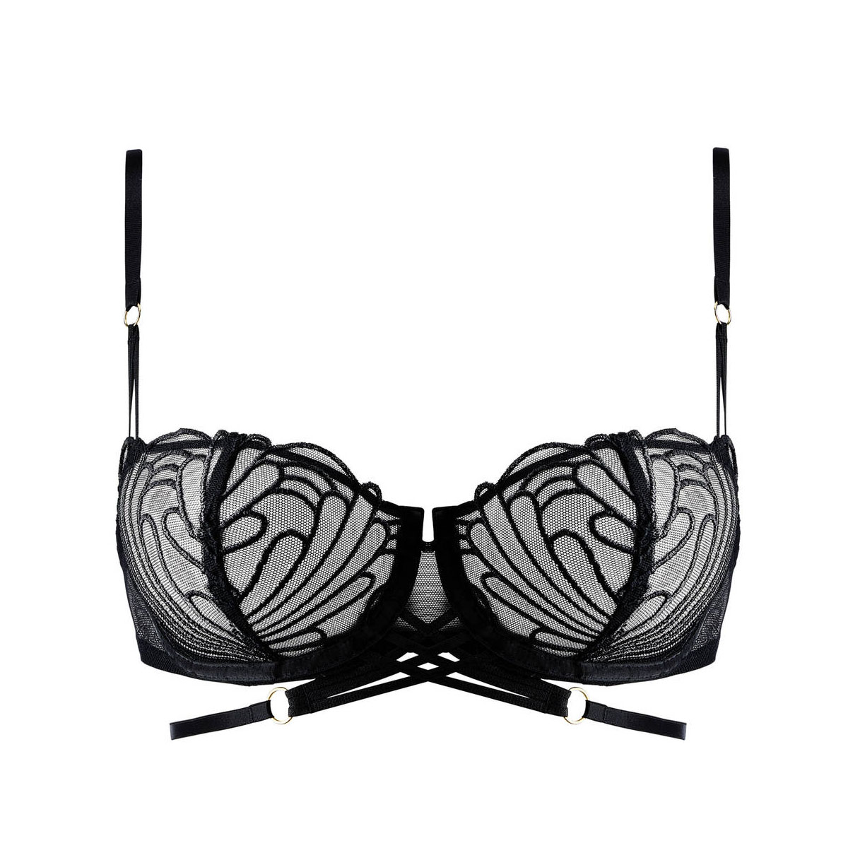 L`Indomptable (Неукротимая) - микс графичной швейцарской вышивки и чувственной прозрачной сетки, дополненный деталями, которые создают эффект шнуровки.